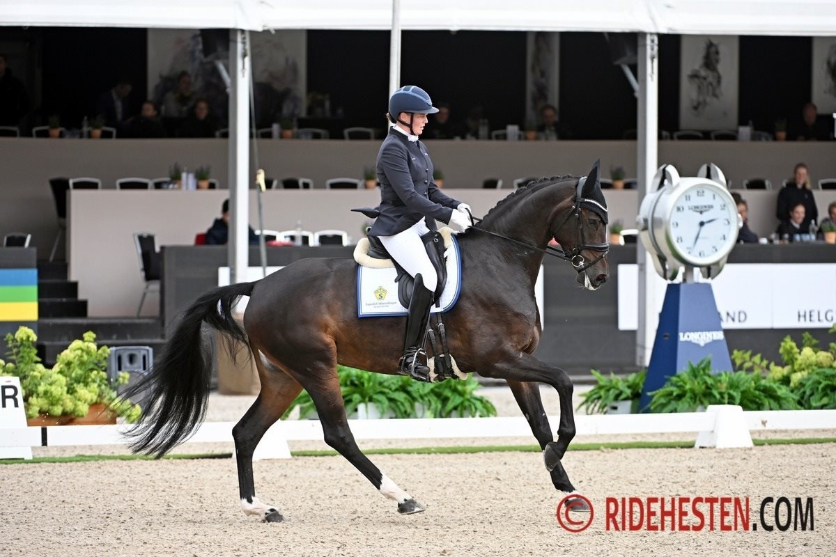 Dagens andenplads gik til den eftertragtede svenske avlshingst Skyline to B e. Blue Hors St. Schufro/ Ampère, som blev redet af sin ejer Carl Hedin.