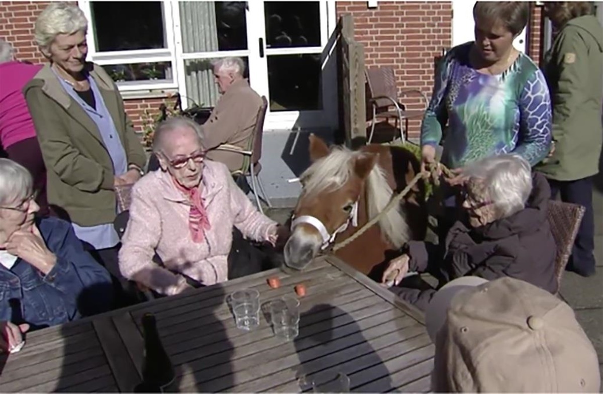 Skøn ponyglæde på plejehjem (Video). For blot et par måneder siden kunne magasinet Ridehesten bringe historien om to ponyer, der spredte glæde blandt de ældre på plejehjem. Flere har fået den glimrende idé, og det er i sandhed en succesfuld oplevelse for de ældre.