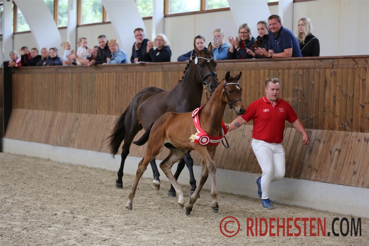 Der var meldt mange føl til, og publikum fik sandelig også noget at kigge på, da dagen startede med de dressurbetonede føl. I konkurrencen om bedste hoppeføl, blev fire fine føl udtaget til dagens finale og her var det katalog nr. 330, Frigg Boesgaard e. Blue Hors Farrell/ Willemoes, avlet og ejet af Stutteri Boesgaard v/ Bjørn Boesgaard, Rudkøbing, der sluttede af på toppen og fik en af de eftertragtede billetter til eliteskuet. Også videre til eliteskuet gik kat. Nr. 45, Stenagers Verona e. Valverde/ Florenciano, avlet og ejet af Bjarne og May-Britt Christensen, Esbjerg, der i dag blev nummer to. Reservepladsen gik til kat. Nr. 42, Skovgårdens Haddie e. Revolution/ Blue Hors Olymbrio avlet og ejet af Bjarne Lund, Morud.