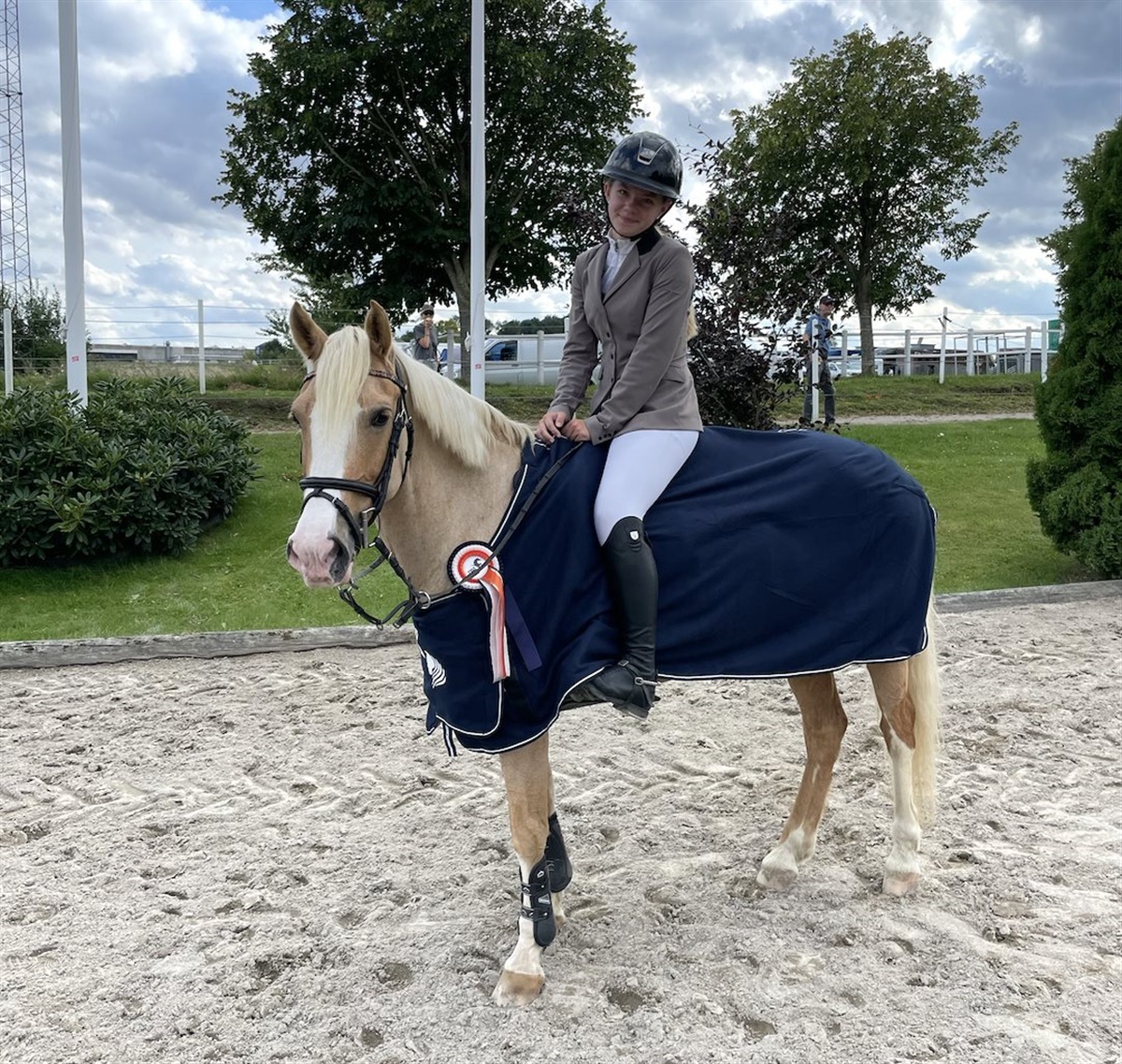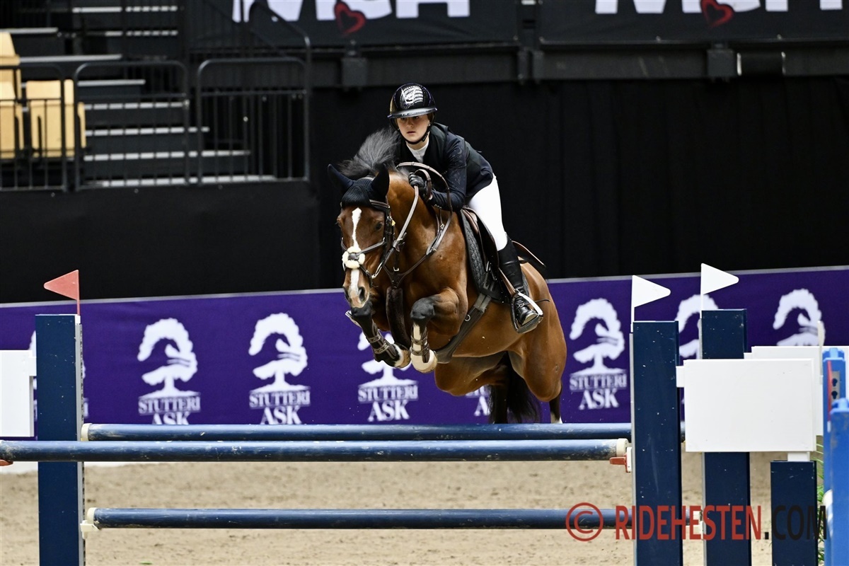 Lige efter dem - med blot 0,49 sekunders forskel - kom Madeleine Poulsen på ponyhoppen Sabrina Fair. Det er en bedrift i sig selv at blive nummer to ved en mesterskabsklasse, men oveni hatten er Sabrina Fair hele 24 år gammel og altså stadig i fuld gang i den højeste ponysport. Parret red fejlfrit i tiden 67,74 sekunder og er altså anden bedst ind i morgendagens finale.