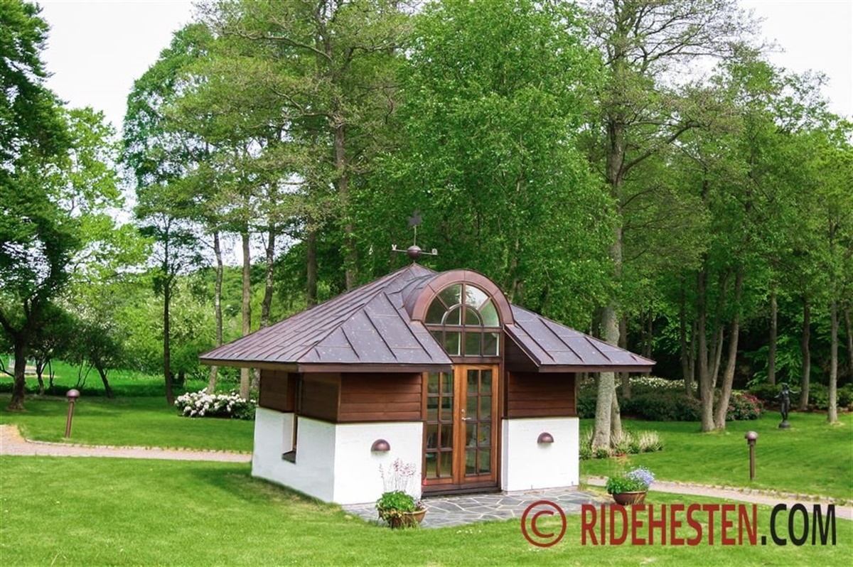 Fra boligerne er der udsigt over den smukt anlagte park med vandløb og et væld af store rododendron omgivet af skov, sø og hestefolde. I parken er opført et fint lille kunstneratelier med kobbertag. Ejendommen er velegnet til bolig for to familier.