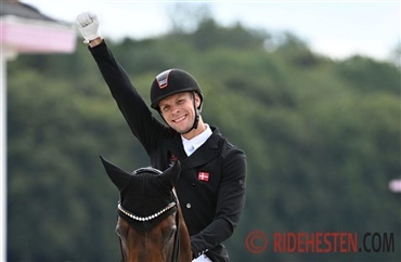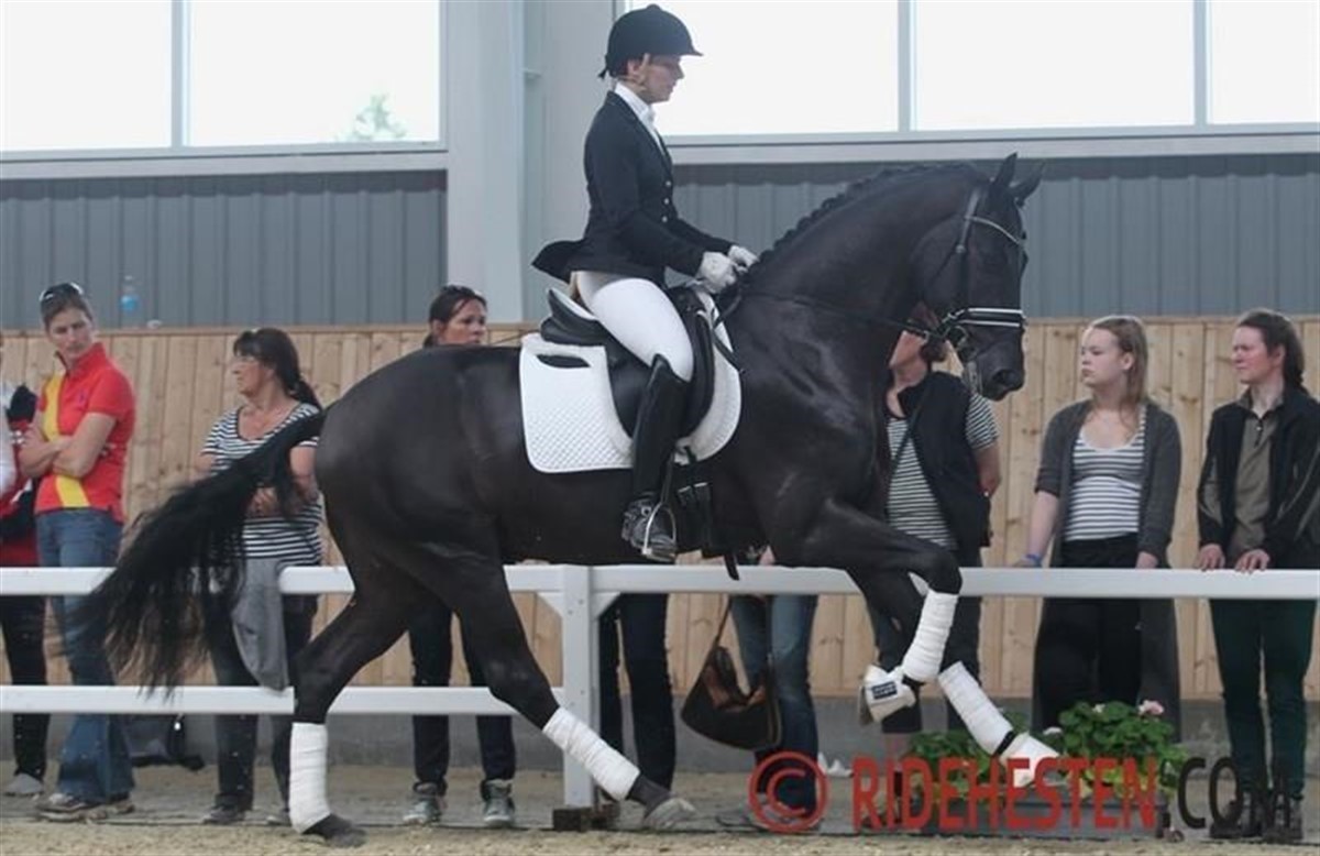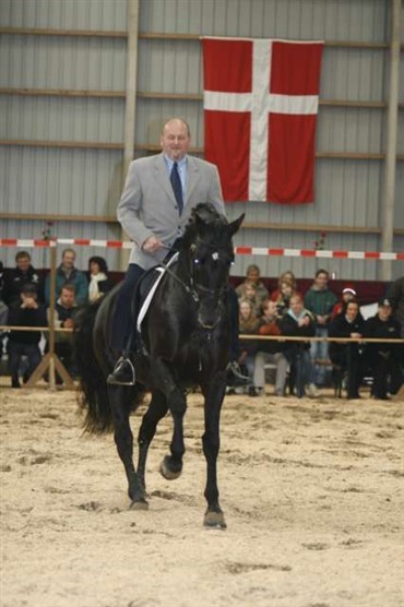 Et af dagens højdepunkter fra en flot opvisning af Hoftanz e. His Highness/ Rotspon i Grand Prix-øvelser med berider Michæl Søgaard i sadlen - en ekvipage der sammen er gået fra championater til sportens højeste niveau. Showet blevet afsluttet af den unge stempelhingst Fürstenball e. Fürst Heinrich/ Donnerhall og flere af dens afkom under sadel. Fürstenball blev som altid smukt fremvist af Ines Westendarp, der blev overrakt blomster og tak for sit engagement og gode management af hingsten.