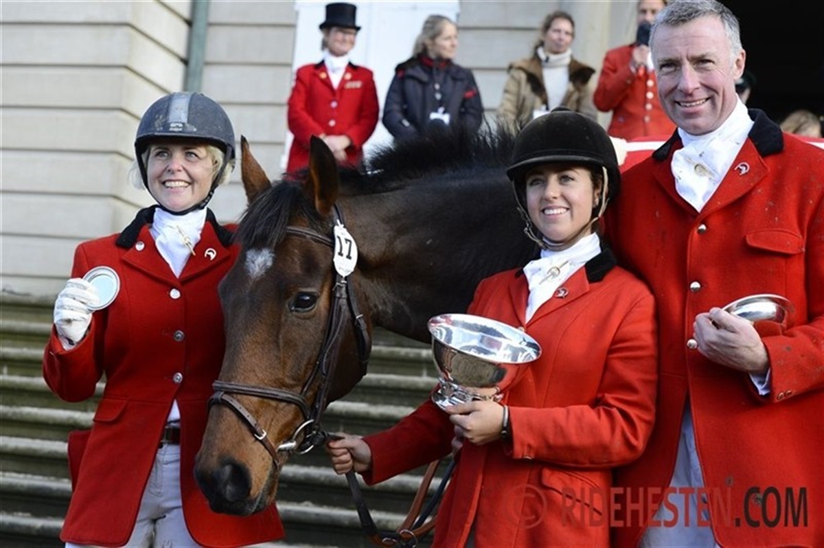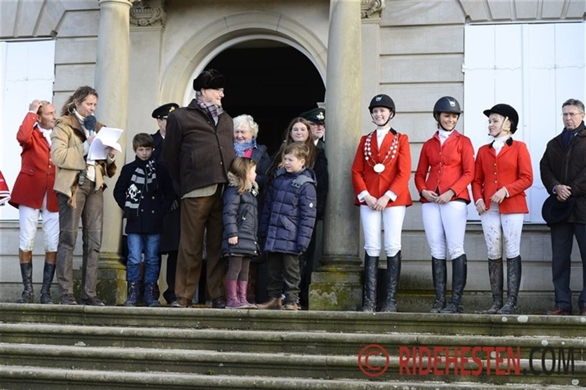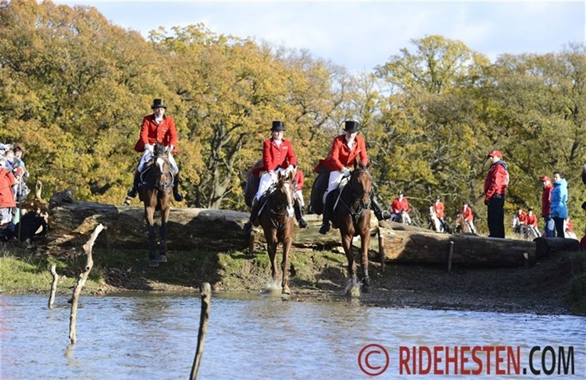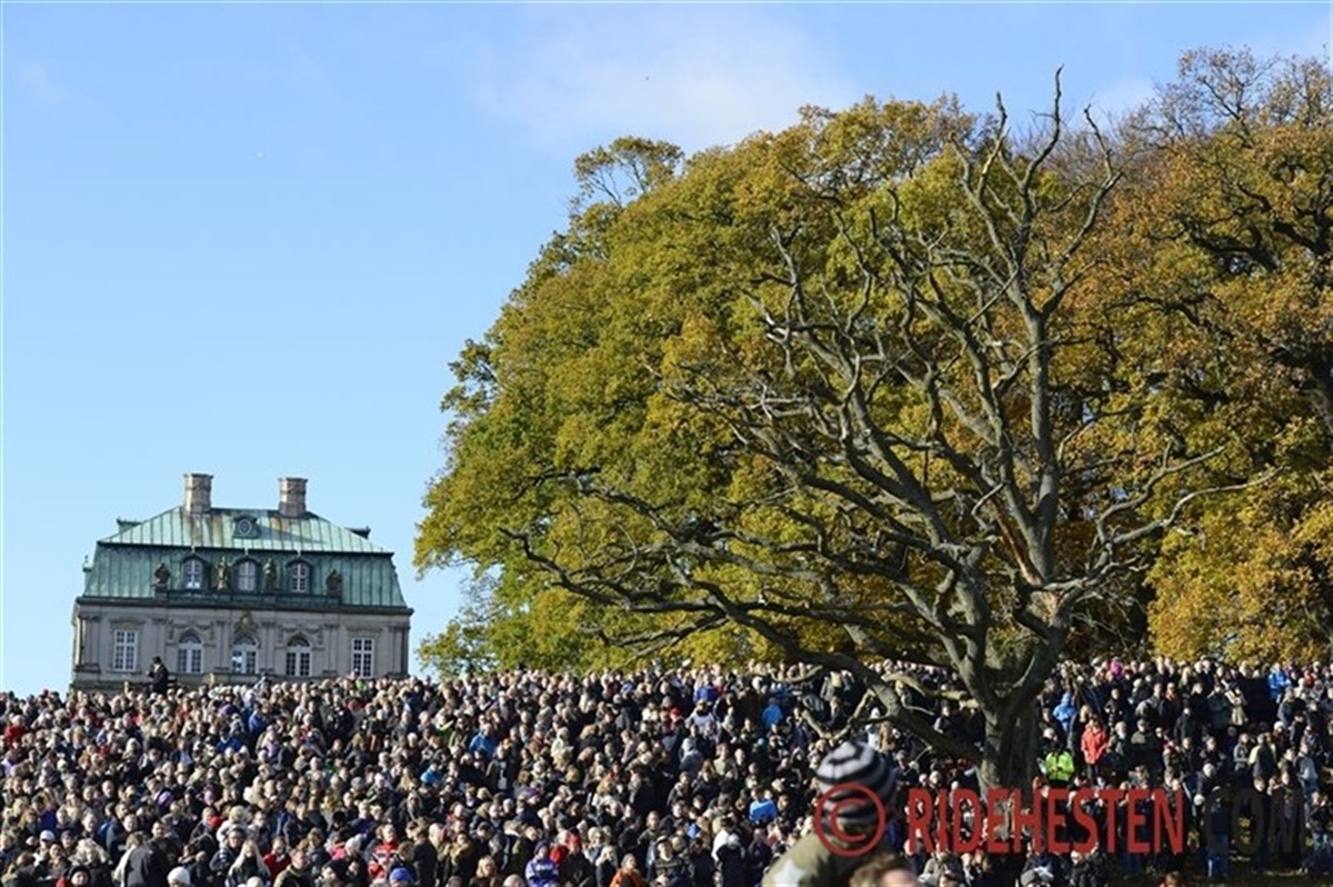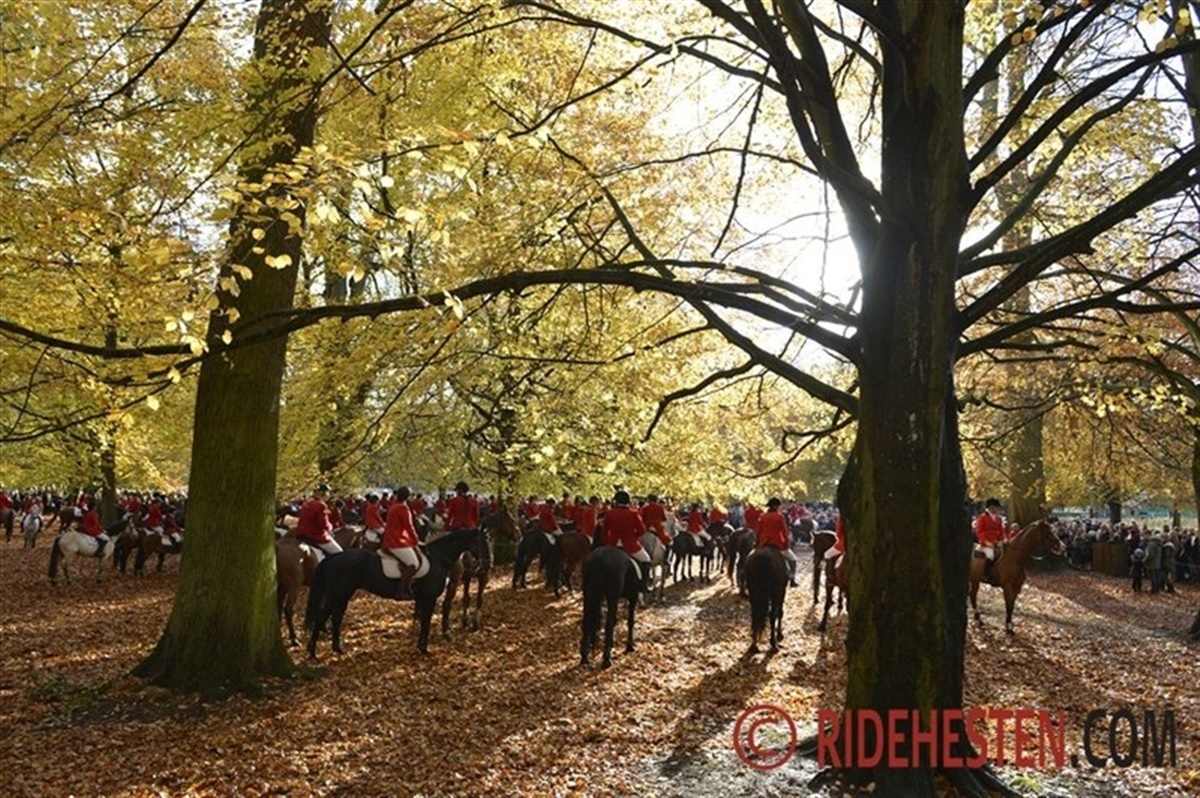 Dyrehaven nord for København viste sig fra sin allersmukkestes side i dag, da den bød velkommen til 160 rødklædte jagtryttere og ikke mindst tusindevis af tilskuer, der var mødt op for at opleve suset og stemningen ved den traditionsrige Hubertusjagten. Starten gik kl. 10 fra Peter Liepps Hus og herefter kunne feltet ride ud efter de to ræve, Henrik Friis og Chris Winther. Det er især passagen af Magasindammen, der er ventet med spænding af både ryttere og ikke mindst af publikum, der står tæt pakket rundt om dammen. I år var vandstanden i Magasindammen ret lav, og samtidig var bunden blevet udbedret med stabilgrus for at sikre rytterne en bedre passage. Det betød da også at alle ryttere – både heste- og ponyryttere kom igennem dammen uden afsidninger, og det var et usædvanligt smukt syn at se de veloplagte ekvipager galoppere i fuld fart gennem vandet. Efter selve jagten er det tid til det spændende opløb, der afgør hvem, der bliver årets Hubertusvindere. Hestenes opløb strækker sig over 800 meter og ponyerne løber 600 meter. Opløbet af deltagelse af de 30 heste og 15 ponyer, som i løbet af sæsonen har kvalificeret sig til at ride med. Hos hestene var det på forhånd forventet at et medlem af familien Halkier ville have gode vinderchancer, da både far Lars Halkier, mor Bettina Halkier og datter Regitze Halkier havde kvalificeret sig til opløbet. Det blev unge Regitze Halkier på Cosmos, der i suveræn stil gallopperede først i mål, og dermed blev årets Hubertusvinder. Lars Halkier blev nr. 2, Henrik Boldt, nr. 3 og Bettina Halkier nr. 4. Hos ponyer blev opløbet vundet Marina B. Hagedorn på Michelangelo. Efter opløbet blev vinderne lykønsket på trappen foran Eremitage Slottet og Regitze Halkier fik overrakt Prins Henriks Ærespræmie af HKH Prins Henrik, der havde taget børnebørnene Prins Christian, Prinsesse Isabelle og Prins Felix med i Dyrehaven.