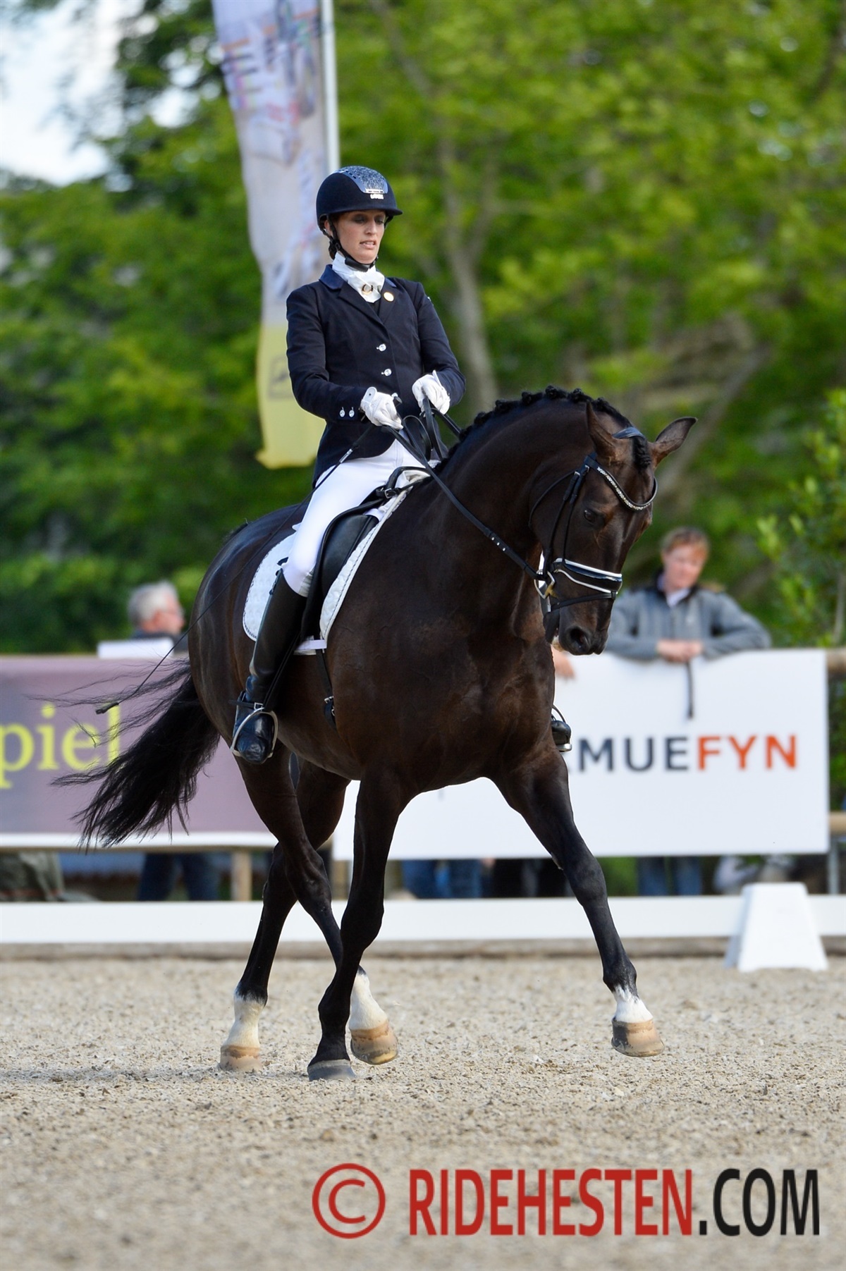 Næste dansker på banen blev Susanne Jensby Sunesen på sin 18-årige hest Que Faire. I søndagens klasse lagde de sig ind på en flot tredjeplads, men i dagens klasse gav Susanne den en tand ekstra – og det med god grund! Sammen opnåede Susanne og Que Faire nemlig en flot andenplads i dagens individuelle klasse kun overhalet af norske Ann Cathrin Lübbe på sin danske hest Donatello.