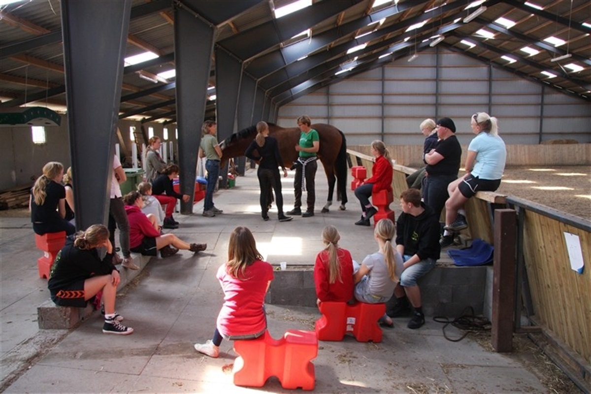 Dansk Varmblods formand, Jan Pedersen, besøgte Ung i DV's sommerlejr, da eleverne fik undervisning i soignering af den kendte avler Lisbeth Andersen. Tove Due underviste i går i belastningsskader hos hesten, teoretisk såvel som praktisk.