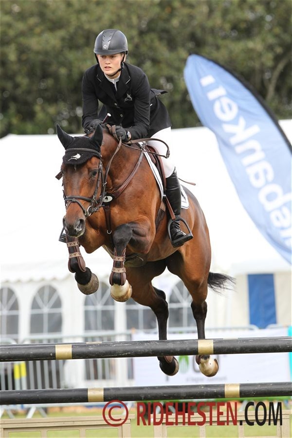 Sashia Astrup Jensen lagde ud med at vinde 140 cm trøstfinalen på Tailormade Anna Chacca med nul fejl i tiden 51,56 sek.