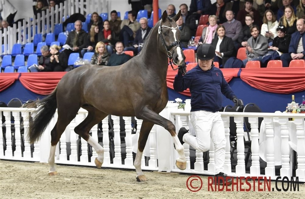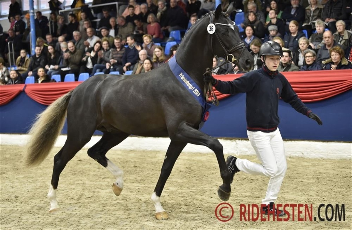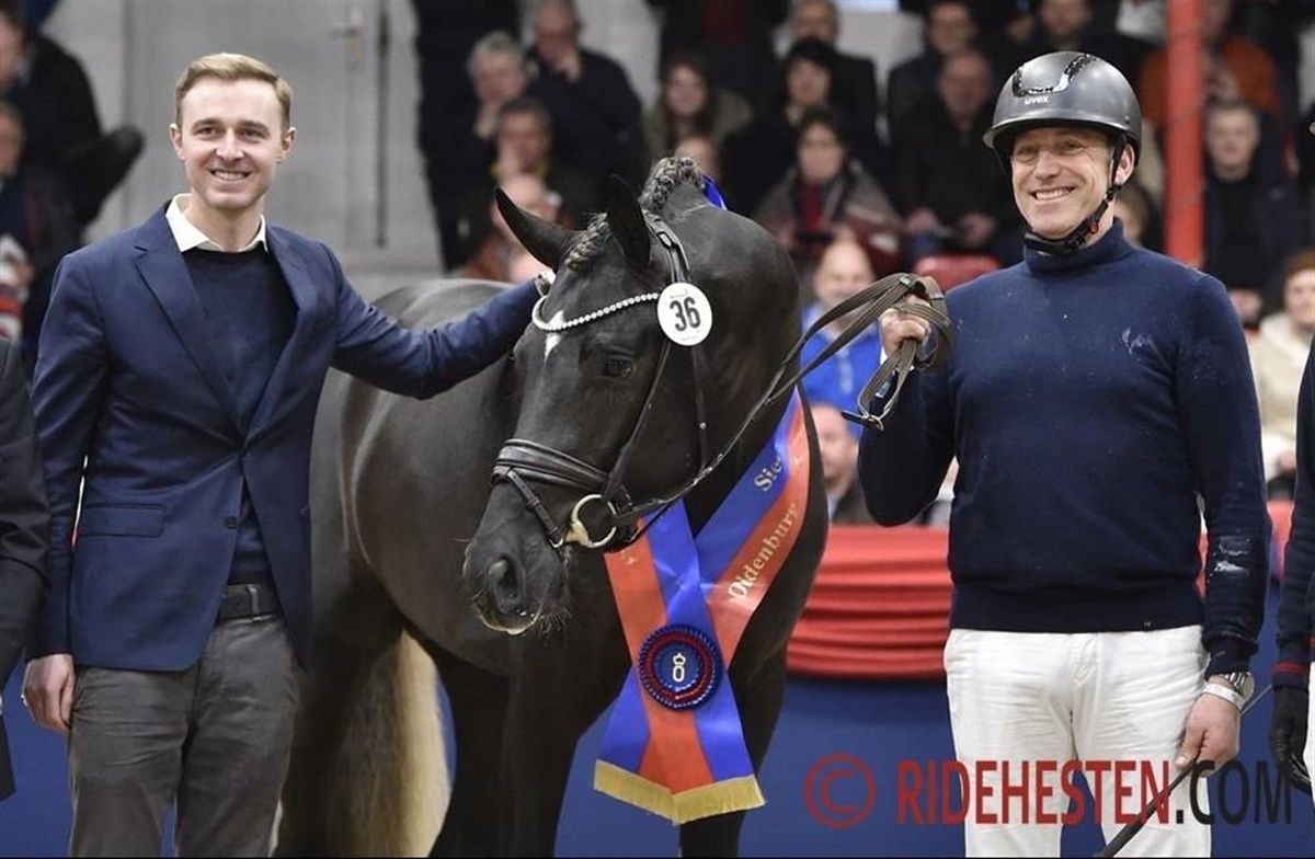 Den smukke fløjhingst med den helt særlige farve blev solgt på auktionen til tyske Gestüt Schönweide og opnåede rekordpris i oldenburgerforbundet.
