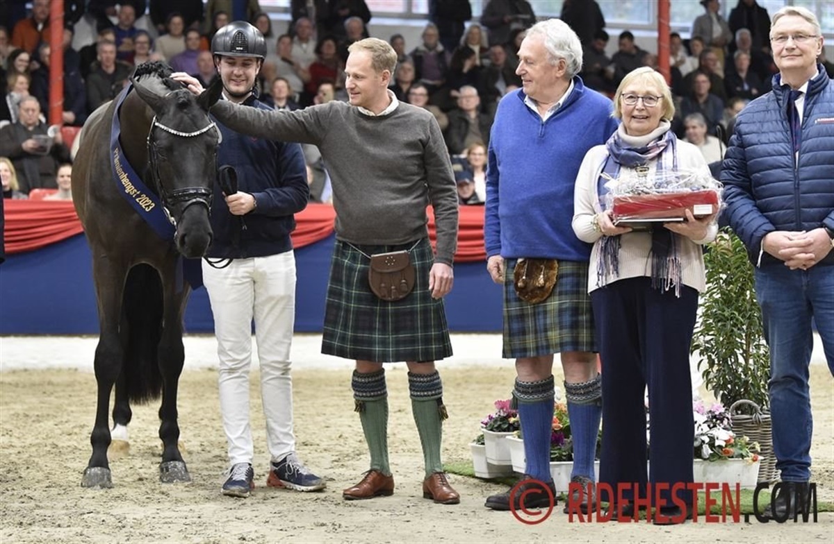 Den 1C-præmierede kat.nr. 68 Total Caledonia e. Totilas/ Sir Donnerhall I/ Don Schufro er avlet af skotske Reay Campbell, Caledonia Horses i Skotland, hvor blev som føl erhvervet af Ann-Kathrin Linsenhoff og Mathias A. Rath. Reay Campbells mand, Peter Campbell, havde medbragt en over 100 år gammel kilt fra sin familie, så Mathias kunne gå i ringen klædt som en skotte.
