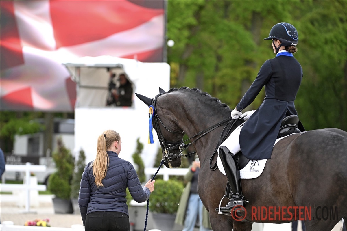 Quintana og Sophia kender efterhånden hinanden rigtig godt, og det bliver spændende at se, om de om få uger kan forsvare DM-guldet, når U25-rytterne mødes til DRF-mesterskabet i Vallensbæk. I dag fik de trænet deres kür, og her satte de helt og aldeles konkurrenterne til vægs. Med intet mindre end 77,47% vandt de overlegent klassen med over seks procent til klassens andenplads.