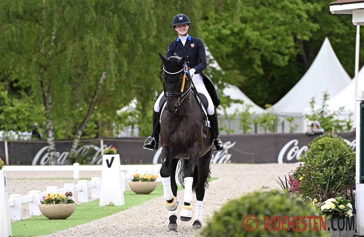 I formiddags var hun til start i ungrytterklassen på Touch Of Olympic, som hun har overtaget fra Nanna Skodborg Merrald, og det er faktisk ekvipagens første stævne sammen. Med 71,12% gentog de gårsdagens sejr med næsten tre procent ned til andenpladsen.