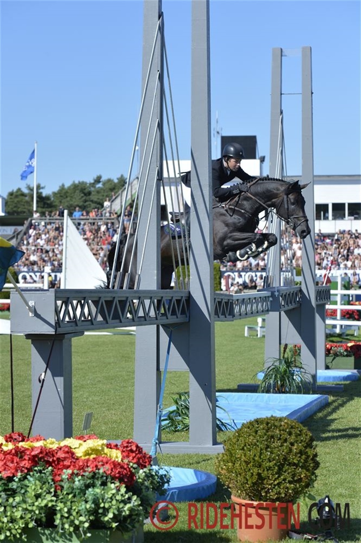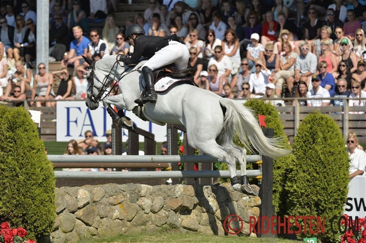 Søren Møller Rohde har to gange tidligere redet derby på Bækgaarden og en gang i Drammen, men mødet med den traditionsrige derbybane i Falsterbo foran et tusindtalligt publikum, det er alligevel noget andet, erkender Søren: - Det er en fantastisk kulisse og svenskerne forstår virkelig at skabe en stemning. Søren kom godt og sikkert fra start på Ci Ci Senjor Ask, men han fik ikke afstanden til den 4 m brede vandgrav til at passe, og selvom hingsten strakte sig, landede de i vandgraven. Ci Ci mistede fodfæstet og var tæt på at gå i knæ, over to tre galopspring kæmpede han for at genvinde balancen, og da han og Søren igen var i balance, stod de nærmest for at skulle springe forhindringen ud af banen, så der måtte de tage en volte. Selvom hingsten sprang ud af banen i andet forsøg, og gik ned af banketten, så virkede han lidt mærket af hændelsen på vandgraven. Og da de kom til Pulverman graven sagde Ci Ci Senjor Ask nej tak. - Jeg ville da gerne have redet banen til ende, og måske hellere have haft en tur mere, så jeg kunne se om jeg i anden omgang kunne komme tættere på vandgraven, sagde Søren med et smil efterfølgende. Han fortæller at Ci Ci Senjor Ask er fin og fit efter forskrækkelsen.