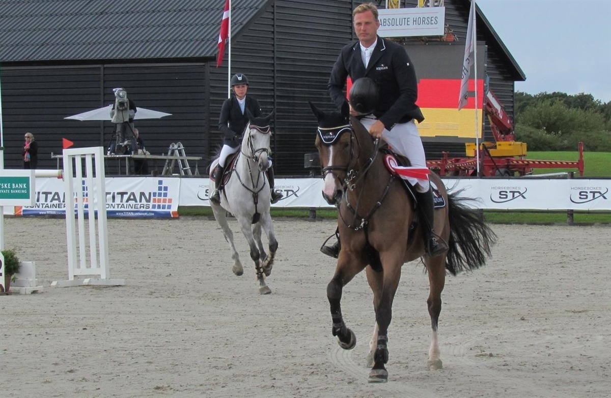 Seks danskere, seks tyskere, to nordmænd og en svensker var ude i en spændende omspringning, da der søndag var afslutning på det første af to internationale stævner hos Absolute Horses på Tågerup i Sommersted ved Kolding. Det oplyser Absolute Horses i en pressemeddelelse.