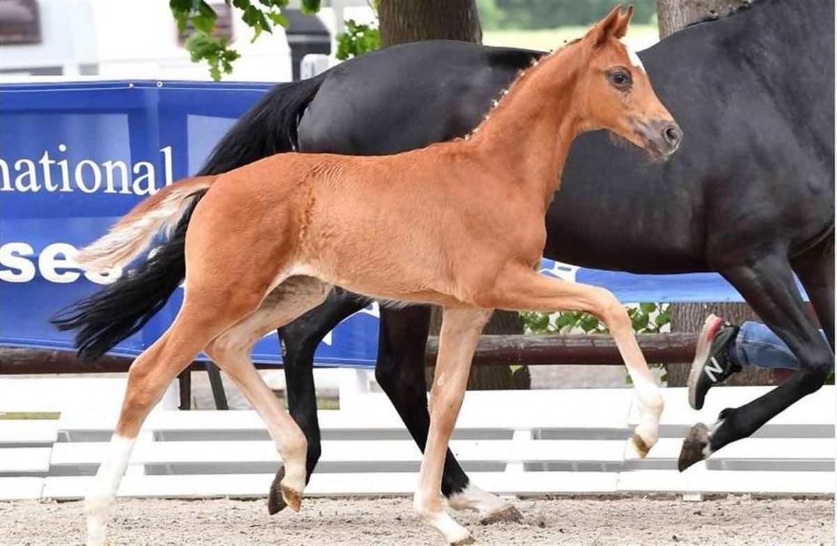 Hele 82.000 EUR blev hammerslagsprisen på det røde hoppeføl, hvilket svarer til mere end 600.000 danske kroner.
