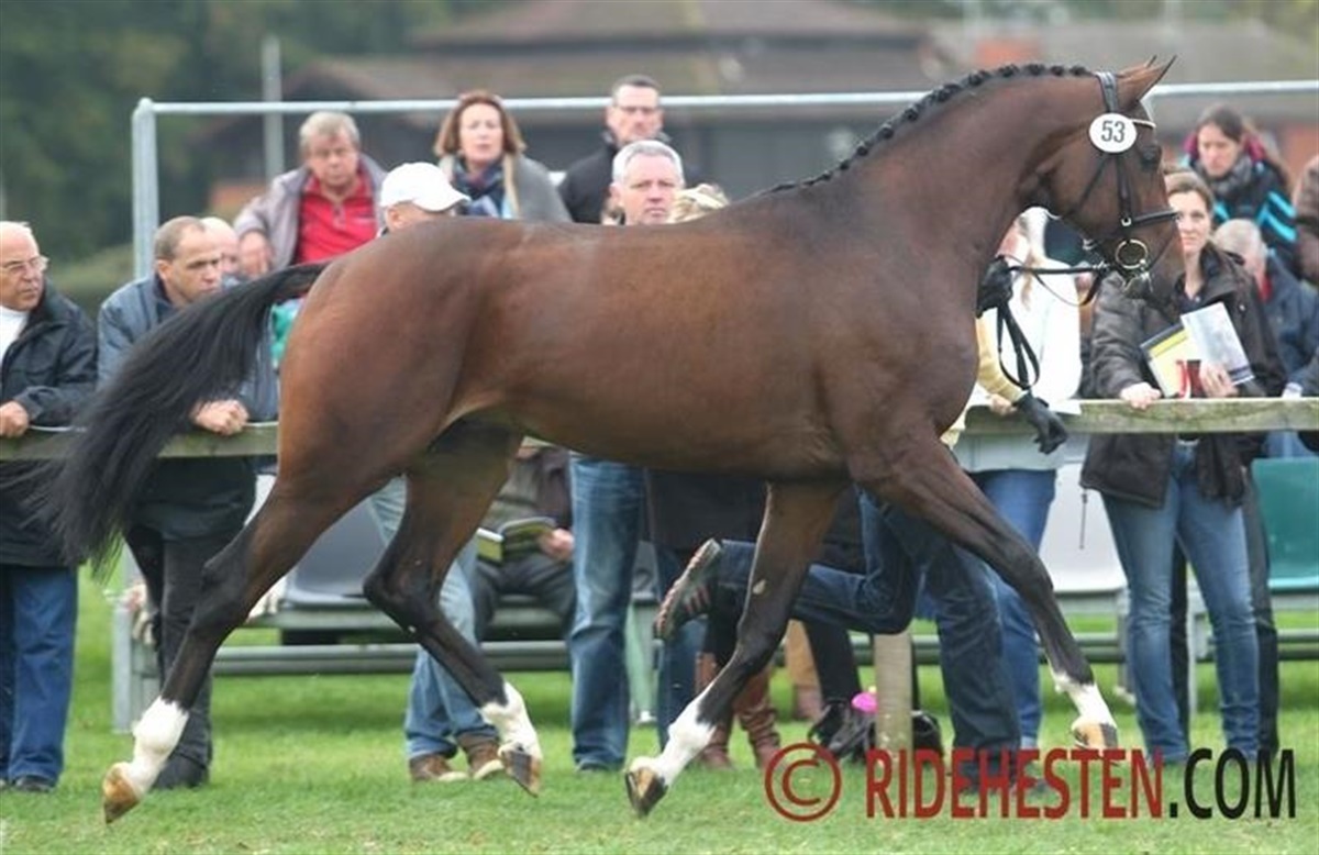 Hingsteholder Ib Kirk fulgte nøje springhingstene i Verden og fandt sig tre emner med kat.nr. 53 som favoritten. Det er en hingst, der afstamningsmæssigt igennem Quintender/ Stakkato/ Contender passer rigtig godt ind i kollektionen på hingstestationen Katrinelund på Mors. Den brune unghingst er af særdeles god type og meget passende størrelse, og så sprang velovervejet og med stort overskud hver gang.