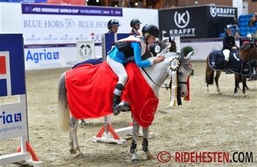 Også ponyrytterne har leveret op til deres bedste, da de også ligger til en guldmedalje for hold. Med 154,20 stafpoint ligger Rikke Nyboe Andersen/Denver e. Desperado K, Jade Schlichting/Søborggårds Bastogne, Sara Ravnholt Urth/Snuske og Liva K. Julegaard/West Side Sweet Babati foran Sverige med 169,30 strafpoint og Norge som nummer tre med 279,10 strafpoint. Individuelt kan det næsten ikke gøres bedre, i det at Rikke Nyboe Andersen ligger til hele to medaljer. Med 45,0 strafpoint ligger hun med Denver til en guldmedalje, mens at hun med Ruby Gold II e. Oosteinds Ricky ligger til en sølvmedalje med 47,2 strafpoint. Til en foreløbig bronzemedalje ligger svenske Lina Forsberg med Flowerhills Kalvin med 49,6 strafpoint.