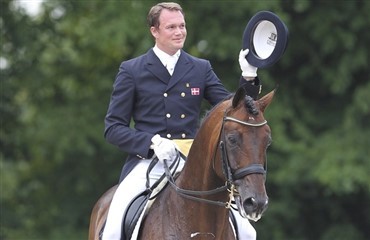 To heste – kat. 308 Møllegårds Pas Partout og kat. 321 Sirikit – havde efter torsdagens 1. runde i Blue Hors Unghestechampionat fået samme pointsum af dommerne, og de yderligere placerede i toppen lå også tæt rent pointmæssigt. Møllegårds Pas Partout og Sirikit er placeret i hver sin gruppe, og Møllegåeden Pas Partout er i dag blevet afprøvet. Med dagens point fra testrytter Jan Brink er kampen om 1. pladsen stadig fuldstændig åben. Møllegårdens Pas Partout blev honoreret med dagens højeste point fra den svenske toprytter, nemlig 9,5 for både ridelighed og kapacitet. Jan Brink udtrykte især begejstring for Pas Partouts imponerende galopbevægelse, med meget aktive bagben. Med pointene har Pas Pastout lagt sig på en foreløbig 1. plads – men i morgen skal Jan Brink på ryggen af guldmedaljehoppen Sirikit – så intet er afgjort! Flere heste fik flotte point fra Jan Brink. Kat. nr. 313, Katholms Don Bosco, der bliver fremvist af Maria Anita Andersen fra Blue Hors, var en af de heste Jan Brink tydeligvis befandt sig godt på, og den elegante røde Don Schufro-søn blev belønnet med 9 for både kapacitet og ridelighed, og fik roser med på vejen for sine evner for samling. Flere af hestene fik dog også testet testrytteren, der et par gange måtte kæmpe for at blive siddende på de unge heste, der var meget påvirkede af at gå i de store og til tider støjende omgivelser i hal B. I morgen venter afprøvningen af det sidste hold af heste i Blue Hors Unghestechampionatet, og herefter bliver det afgjort, hvem der løber med sejren i år. Foreløbigt resultat følger snarest.
