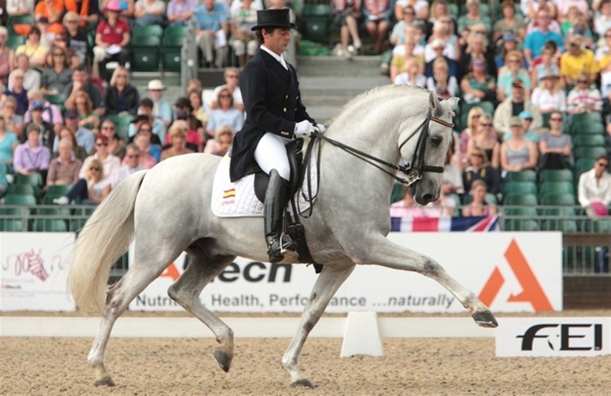 Efter spaniernes sidste observationsstævne, CDI Cappeln, udpegede chef d'equipe Bobby Fernandez de Bobadila følgende ekvipager til holdet: Juan Manuel Muñoz - Fuego XII Claudio Castilla - Jade de MV Rafæl Ortíz - G-nidium José Antonio García Mena - Norte Reserve: José María Sánchez Cobos - Fogonero Holdet består udelukkende af andalusiske og lusitanske heste. Jordi Domingos KWPN-vallak Prestige e. Ferro var ikke fit ved holdudvælgelsen. Kilde: Eurodressage.
