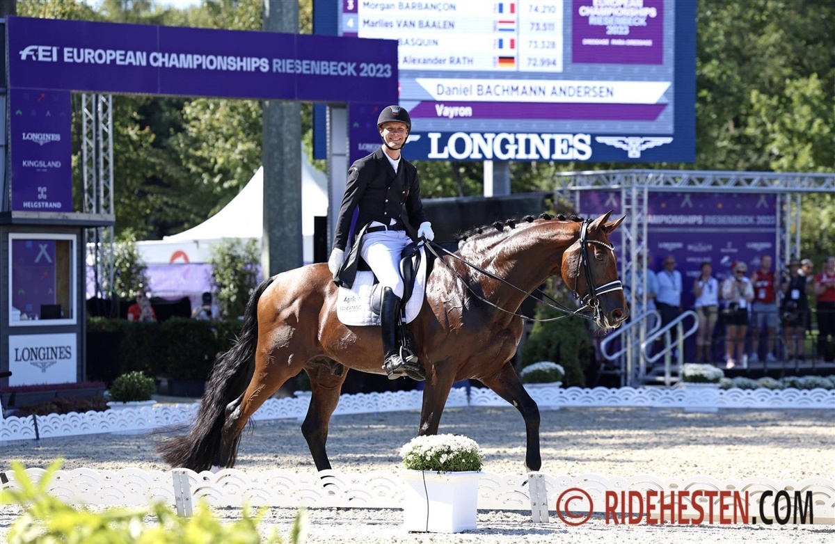 Mon ikke de fleste holdt vejret lidt, da Daniel Bachmann Andersen i sidste måned måtte trække Vayron fra stævnet i Ermelo grundet et kolikanfald. Heldigvis lykkedes det at få hurtigt styr på den 12-årige Westphaler-hingst efter Vitalis/P.B. Gloster, sådan at han hurtigt var tilbage i træningen og efterfølgende blev udtaget til EM. Siden da har Daniel brugt en masse tid på at finde det helt rigtige setup for hingsten, som næsten måler 190 centimeter i stang.