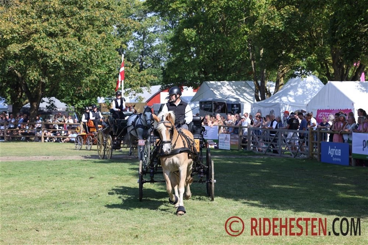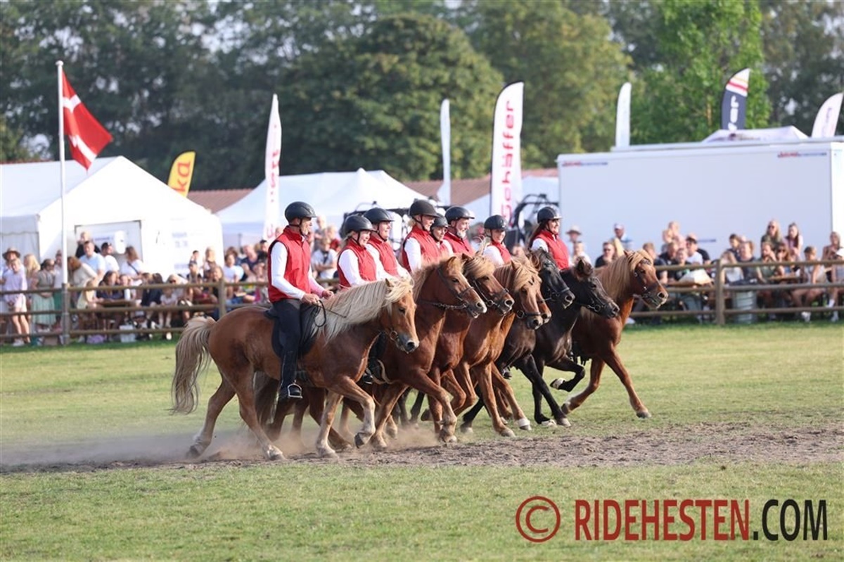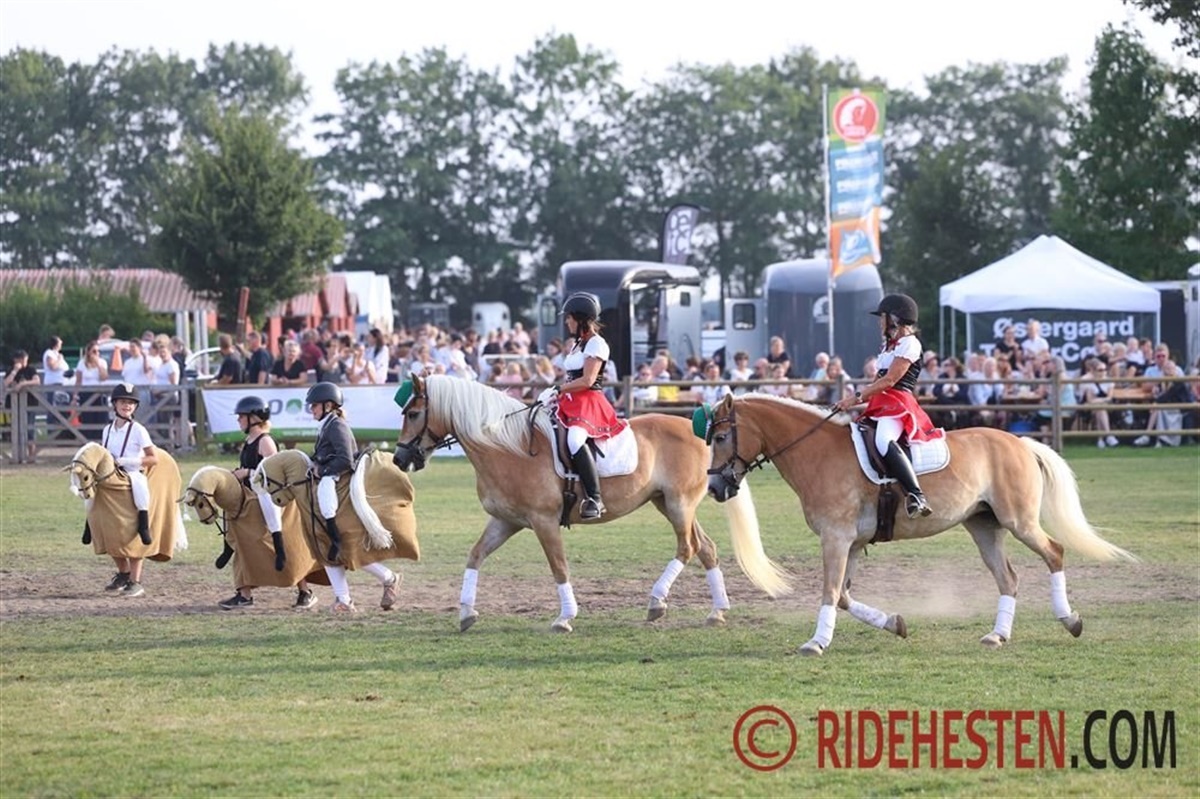 Tyrolerhesten haflinger blev også vist frem af tre heste og tre unge ryttere iført et sjovt haflingerkostume, og så optrådte dansk varmblodshestene med et Top Gun-show i både dressur og springning.