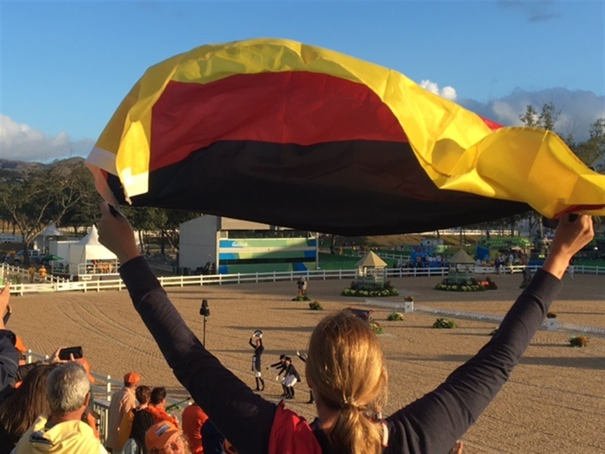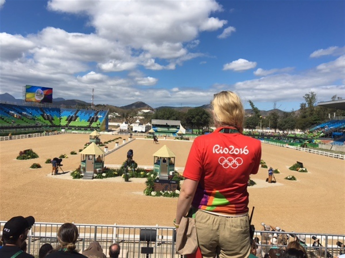 Da jeg kom tilbage på arbejde var det den sidste dag af de indledende runder til hold dressur. Jeg fortalte mit team at Danmark havde to fantastiske ryttere på banen, Anna Kasperzak og Cathrine Dufour.
