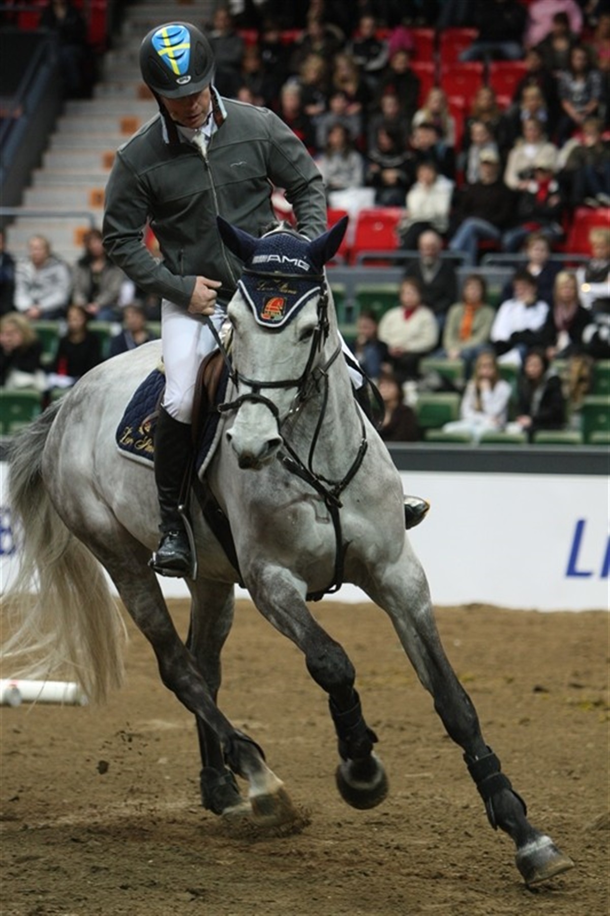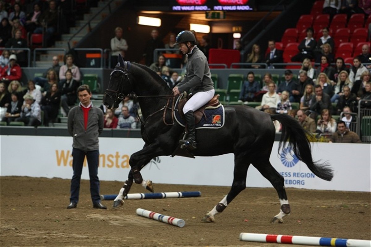I Ridehesten har vi bragt flere træningsartikler, hvor Rolf-Göran Bengtsson og Bo Kristoffersen har givet gode råd til træning og uddannelse af springheste. I Göteborg gav Rolf en smagsprøve på, hvordan han træner sine heste. Hele tiden lød det fra Rolf: vær rolig, tag det roligt. Og så viste han velredne heste, som han kunne regulere størrelsen på deres galopspring på, uden modstand fra hestens side. Kontrol, var også et af kodeordene i dagens clinic, men kontrol på en sådan måde, at man også giver plads til, at hesten tør og kan tænke selv, for det er vigtigt, når det går løs inde på banerne i konkurrence.