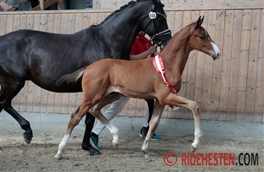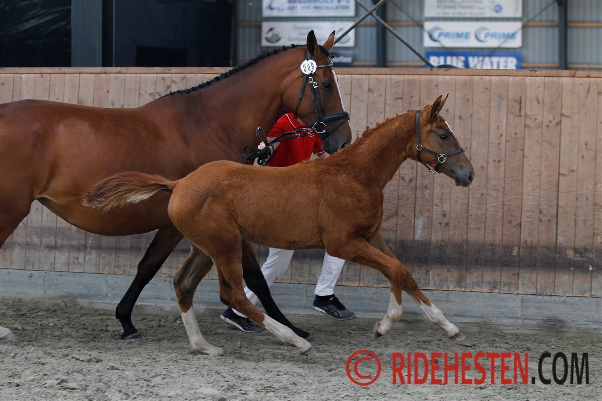– Et ædelt udtryk, med masser af feminint præg, særligt velstillede lemmer og en prima galop, var dommernes kommentarer om det skønne hoppeføl, der tydeligt nød at vise sig frem i hallen.