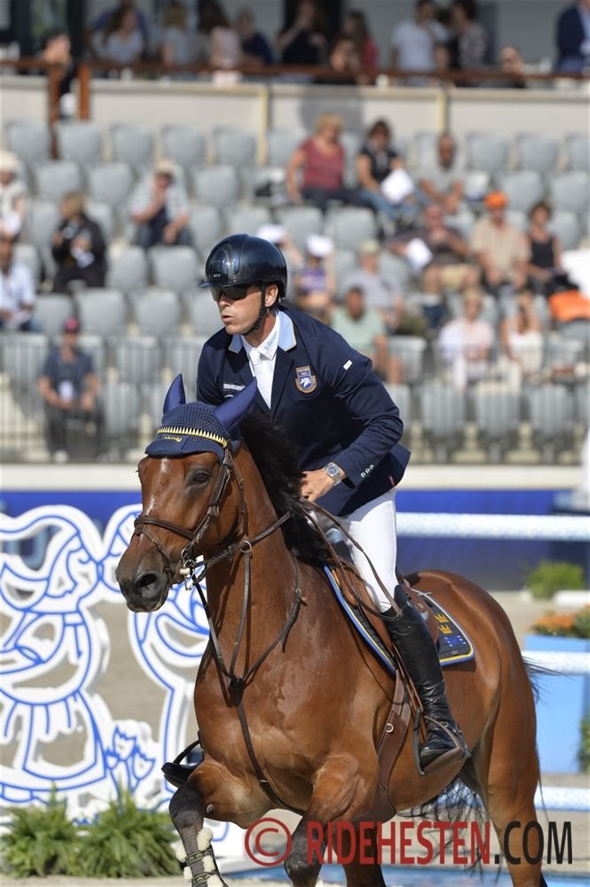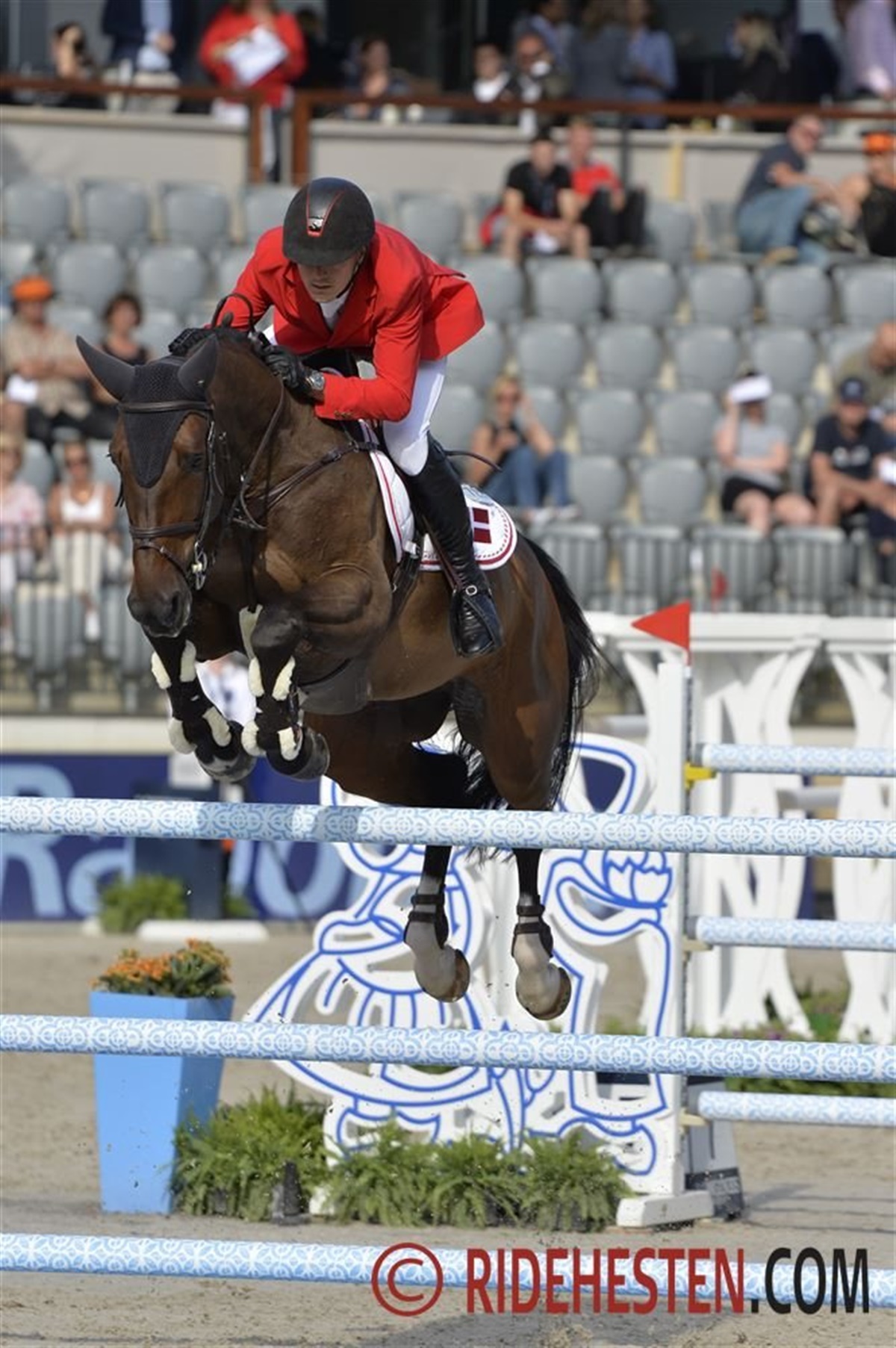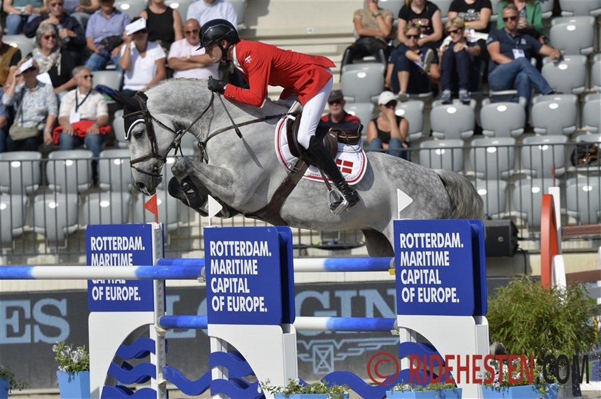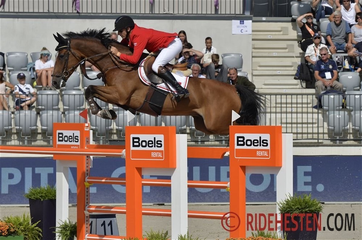 Også Kim Kristensen og Albert K e. Heartbeat (opdr. Søren Knudsen) var fejlfri og de er noteret for 5,64 fejl. Desværre for Nikolai Hein Ruus fik han fejl på vandet med Cadillac, men det var også den eneste fejl de var i nærheden af at få. Hans fejl, 7,13 tæller ikke med til holdresultatet, det gør Andreas Schou og A-Girl, på trods af de fik nedslag på de to sidste forhindringer, havde de så hurtig en tid, at de kommer videre med 6,72 fejl. Holdet har ialt 16,65 fejl inden torsdagens holdkonkurrence, som sammen med dagens resultat, kvalificerer 10 nationer til den afgørende finale fredag. Danmark ligger lige nu på 10. pladsen, mindre end et nedslag fra Holland på 9. pladsen.