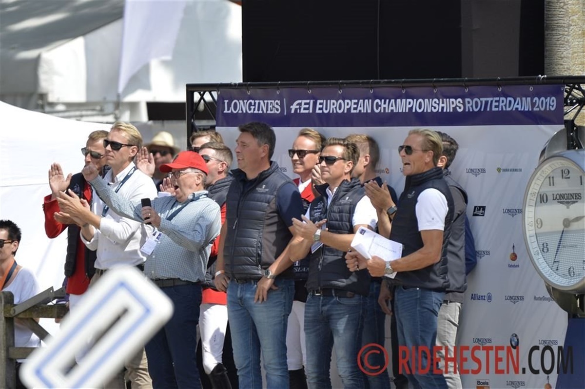England, Schweiz, Irland, Israel, Belgien, Holland og Danmark er i top ti efter tidsspringningen. Som man kan høre i dette web-tv klip, så er landstræner Bo K. Møller meget tilfreds med dagens resultat. Naturligvis kan alt ske, men hestene har sprunget godt i dag, og rytterne har ikke trukket store veksler på hestenes kraftreserver. Der er en god og positiv stemning på holdet, bekræfter han. Han ser frem til torsdag, hvor holdkonkurrencen fortsætter fra kl. 10.