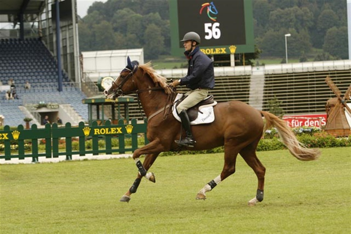 Så har springrytterne indtaget stadion i Aachen. I dag skulle samtlige 134 heste gennem veterinærundersøgelse, og begge de danske deltageres heste klarede den opgave uden anmærkninger. Der er kun to danske ryttere til start: Tina Lund og Carola e. Coronado opdrættet af William Jensen og Thomas Velin med sin franske, danskkårede hingst Godsend du Reverdy e. Quidam de Revel. Begge heste så godt ud i dagens træning, selvom Carola virkede lidt imponeret af de mange blomsterarrangementer. I morgen tirsdag indledes springningen med en tidsspringning for samtlige deltagere. Onsdag og torsdag afgøres holdkonkurrencen, hvor også de to danske deltagere skal i aktion. Lørdag er der lille finale for de bedste 25 ryttere efter tidsspringningen og holdkonkurrencen. Det hele slutter søndag eftermiddag med den spændende finale med kun fire ryttere, som skal bytte heste og springe kollegernes topheste på skift over samme bane.