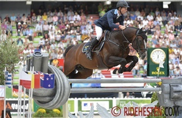 Rytteren skal ved at gå rigtigt med i bevægelsen i afsættet gøre det så let som muligt for hesten at springe forhindringen. Ved at lægge schenklerne til og ved at følge med hænderne frem i bevægelsesretningen er det endnu muligt at indvirke til en vis grad i den opadgående del af svævefasen.