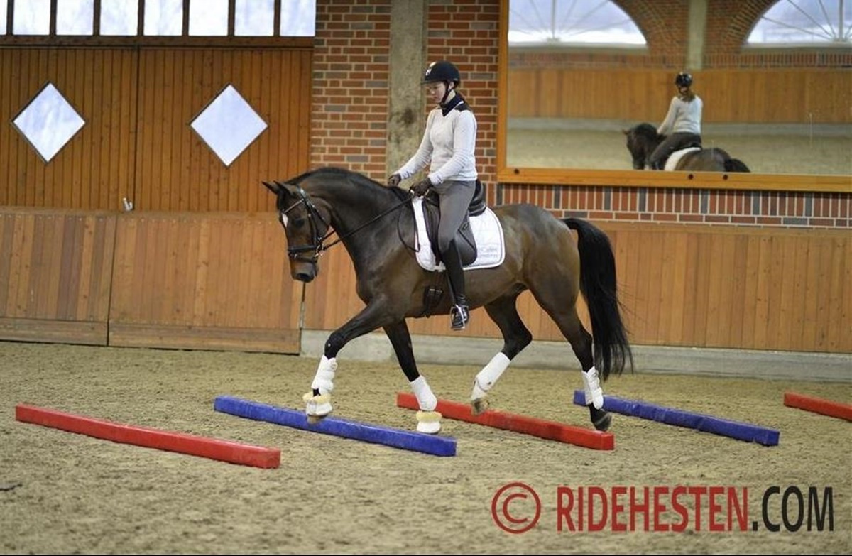 –Når jeg lader hestene galopere over cavaletti i longen, får de bedre balance og øget styrke af afsættet. Nogle dressurheste er dog så talentløse eller bange for opgaven, at det ikke gavner. Nogle heste har behov for meget støtte i arbejdet over cavaletti. –Dem rider jeg, så kan jeg bedre hjælpe dem til at få den ønskede effekt af træningen, forklarer Maria.