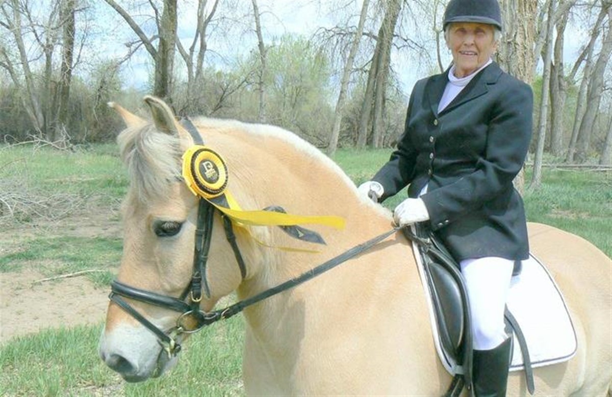 Ginny købte i en alder af 58 sin første hest, en 7 årig dressur araber ved navn Sam. Hun forelskede sig i sporten, og selvom hun først startede med at ride som voksen, var hun ikke bange, efter 30,000 timer i luften som pilot og flyve censor, virkede en aktivitet på jorden ikke skræmmende. En ven fortalte hende om Century Club, der er en organisation der ærer dressurryttere - og heste, hvis samlede alder er 100 år eller mere. Ekvipagerne kan konkurrere på alle niveauer og er dermed berettigede til en Century Club roset. - Tja, han er gammel og jeg er ved at blive gammel, så lad os gøre det, tænkte Ginny, da hun første gang meldte sig til Century Club stævne på hendes araber Sam, der på det tidspunkt havde nået en alder på 30 år. Da Ginny senere fik fjordhesten Loki, tænkte hun at hun ville gentage successen. Ginny har deltaget i to Century Club stævner, men har ikke besluttet om hun vil gøre det igen. - Jeg rider bare for sjov… Loki er 20 år nu, men han er sund og rask og kunne sagtens klare det, siger Ginny. Heste har bidraget med stor glæde i alle faser af Ginnys liv, - Jeg har 3 døtre og dem har der aldrig været problemer med, de brugte al deres tid hos hestene. Jeg mener det er vigtigt for unge mennesker at have noget at gå op i, siger hun. Ginny synes at Century Club er fantastisk, fordi det giver opmuntring til ældre mennesker. – Nogen gange er det hårdt at komme ud og ride, når man er øm og ør i kroppen, men hvis man har noget at se frem til, holder man sig i gang, siger hun. Ginny og Loki bor på en gård i Colorado og køre en gang om ugen ud, for at ride med nogle venner. - Det er den lidenskaben, den holder dig i bevægelse, afslutter Ginny.