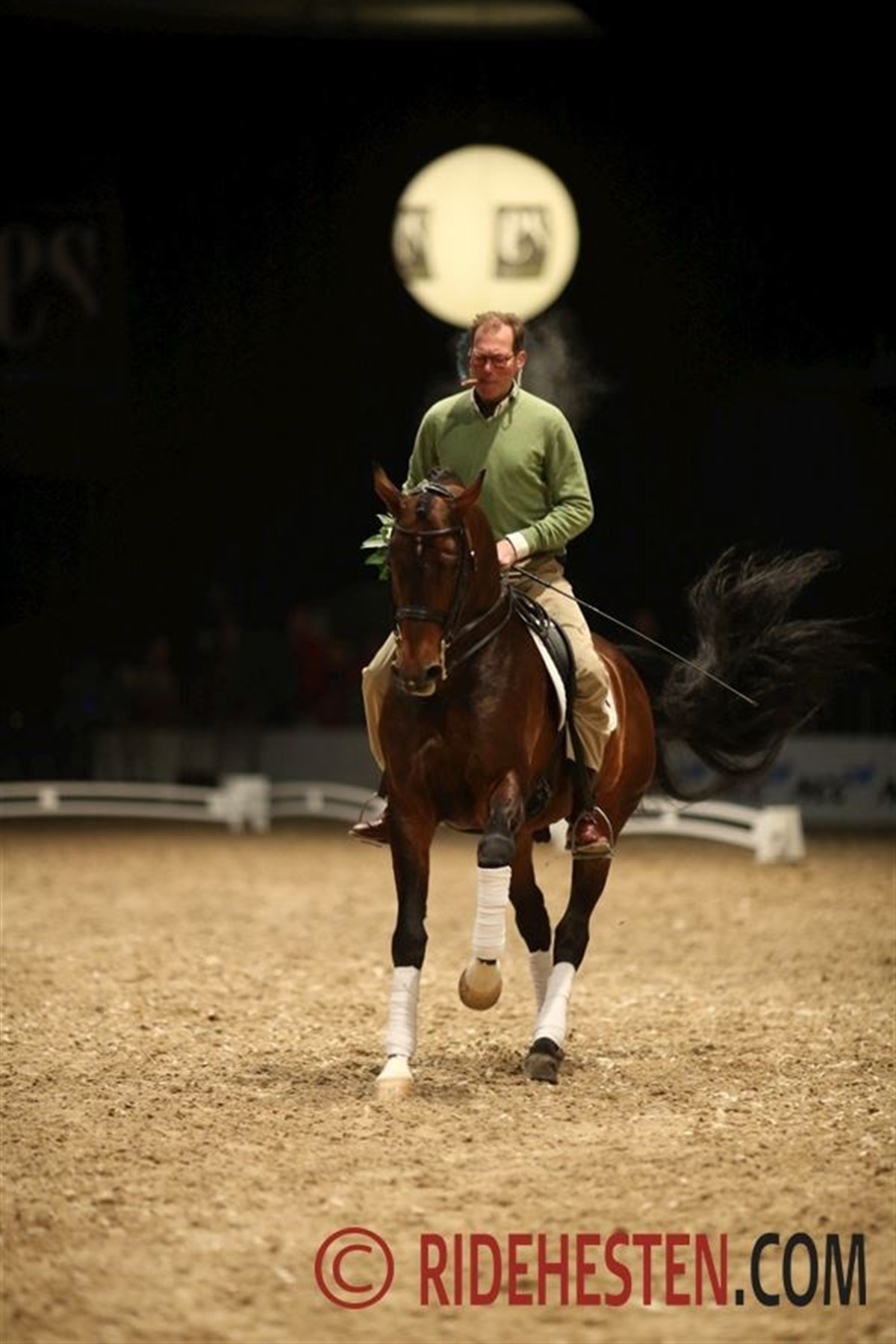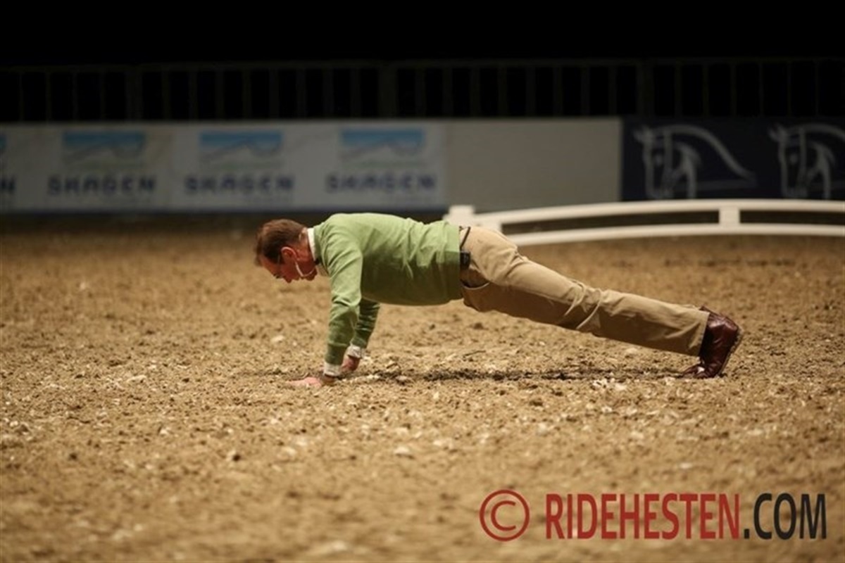 Kort efter pausen lod Hoffmann sig falde til jorden og lavede en serie armstræk – med det formål at vise hvordan hesten skal få styrke nok til at kunne skubbe rytteren op og ned. Få minutter senere luskede der sig en skimmel ind i hallen. På ryggen af den sad Christian Schou, som Hoffmann bad om at vise alle dressurrytterne, hvordan man med tydelig indvirkning kan hjælpe sin hest. Til slut var det så Hoffmann selv, der sprang i sadlen på den kårede hingst Onassis og med cigar – tændt, vel at mærke – i mundvigen tog et par runder til et bragende bifald.