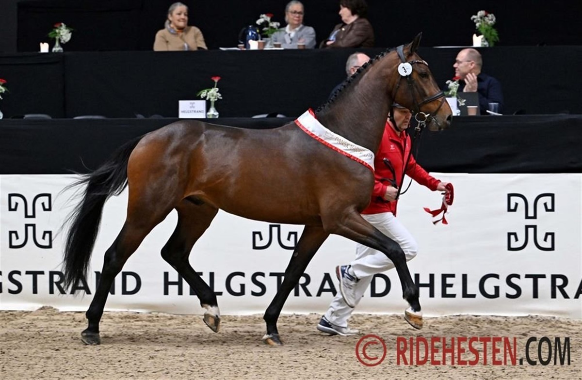 – Det er en hingst, vi har nydt at se i løsspringning helt fra han kom til forbesigtigelsen og igen til træning og nu her i Herning, og han har hver gang leveret det, han skulle. Han er en harmonisk hingst, han er højtstillet, måske lidt sluttet i overlinjen, men det er en meget smidig og meget velfungerende overlinje. Hingsten er udstyret med et stærkt fundament med velstillede lemmer, god ledmarkering og velformede hove. Galoppen er vældig energisk med en masse kraft og aktion. Han afvikler springet meget smidigt og i en fantastisk flot form, og så er det sådan en hingst, som viser det samme ens spring, hver han gang springer. Han er tilpas forsigtig og springer med stor kraft i afsættet.