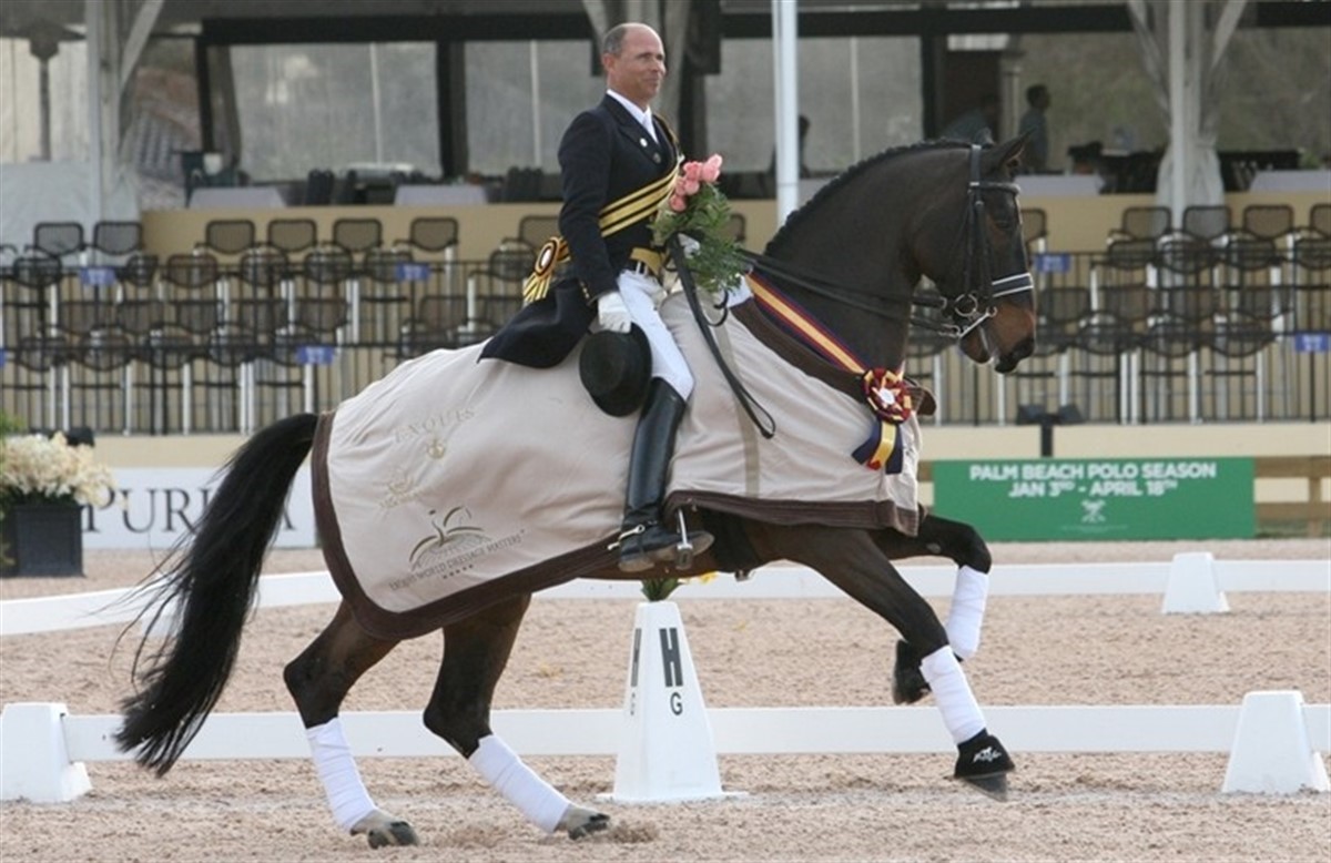 Floridas store dressurstævne Exquis World Dressage Masters blev torsdag indledt med Grand Prix. Startfelten herovre tæller store navne som Ulla Salzgeber, Ashley Holzer, Anky van Grunsven, Isabell Werth og den lokale favorit, 2009 world cup vinderen og årets rytter i USA 2009, Steffen Peters. Med sin hollandske vallak Ravel e. Contango slog amerikaneren som ventet sine europæiske konkurrenter. Sejren var velfortjent, men konkurrencen var tæt. Den store, løsgjorte og afspændte Ravel gik i sin velkendte, flotte ramme og som én af de få med næsen helt fremme i lodret, og mestrede samtidig kravet til samlingsgrad. Steffen Peters ridt forløb flydende med flotte overgange og uden reelle fejl. Med en score på 76,851% distancerede han de europæiske konkurrenter, hollandske Anky van Grunsven og Salinero med 74,638% og tyske Isabell Werth og Satchmo med 72,553%. Den danske lejr bakkede særligt op om to ekvipager, nemlig danske Mikala Gundersen med Leonberg og amerikanske Tina Konyot med den danske Calecto V, men desværre havde Mikala ikke helt Leonberg på sin side i dagens ridt og Tina red forkert i programmet. Det blev alligevel til et par hæderlige ridt og begge fik over 65%. Lørdag afvikles Grand Prix Special og Kür.