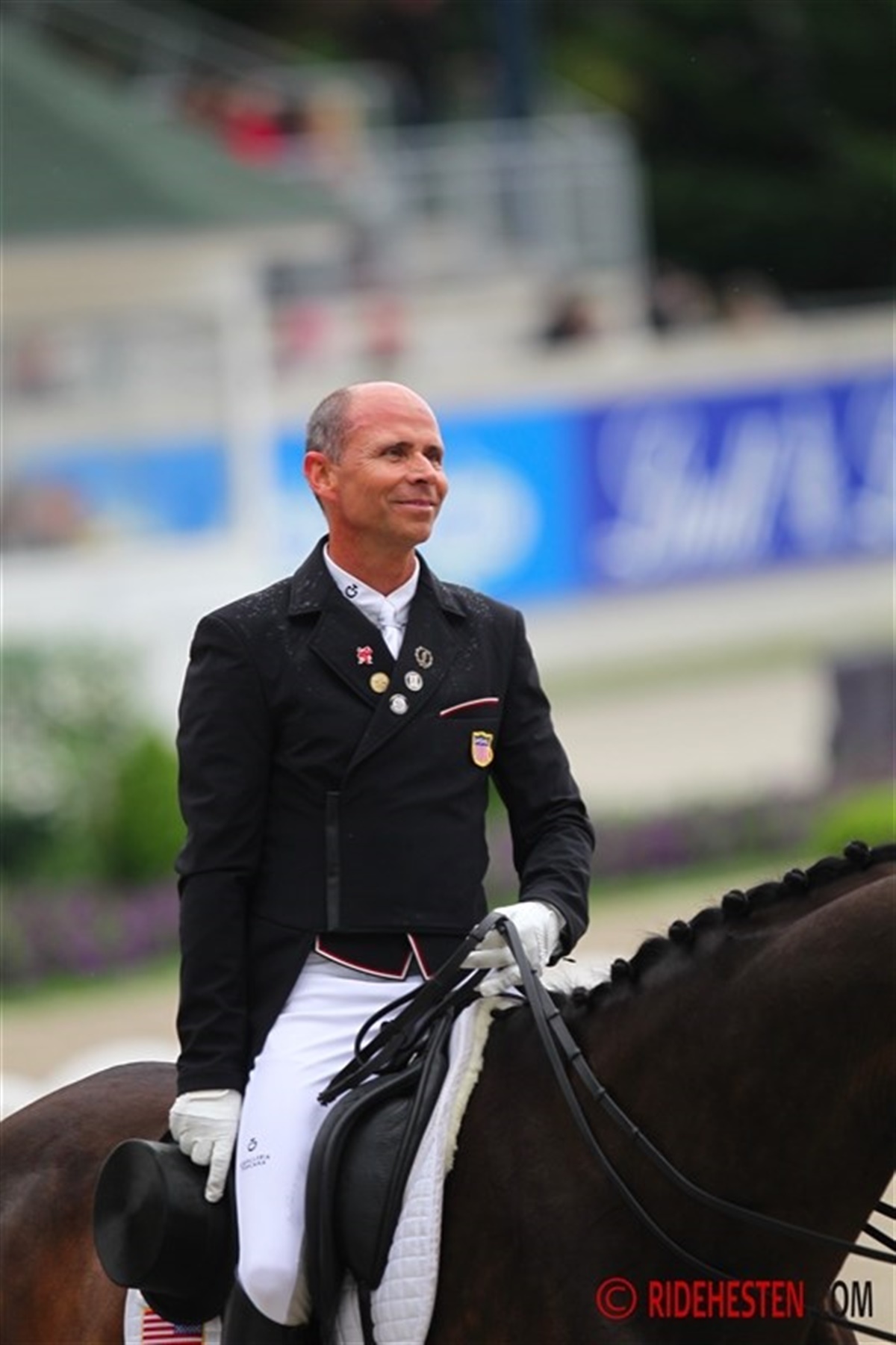 "Hesten var 100 procent fint, da han red ind i arenaen," siger den amerikanske Chef d'Equipe Robert Dover , han forsatte - Desværre havde han en lille smule rødt på den ene side, da han kom ud, og regler er regler. Steffen er en stor sportsmand, han forstod afgørelsen.