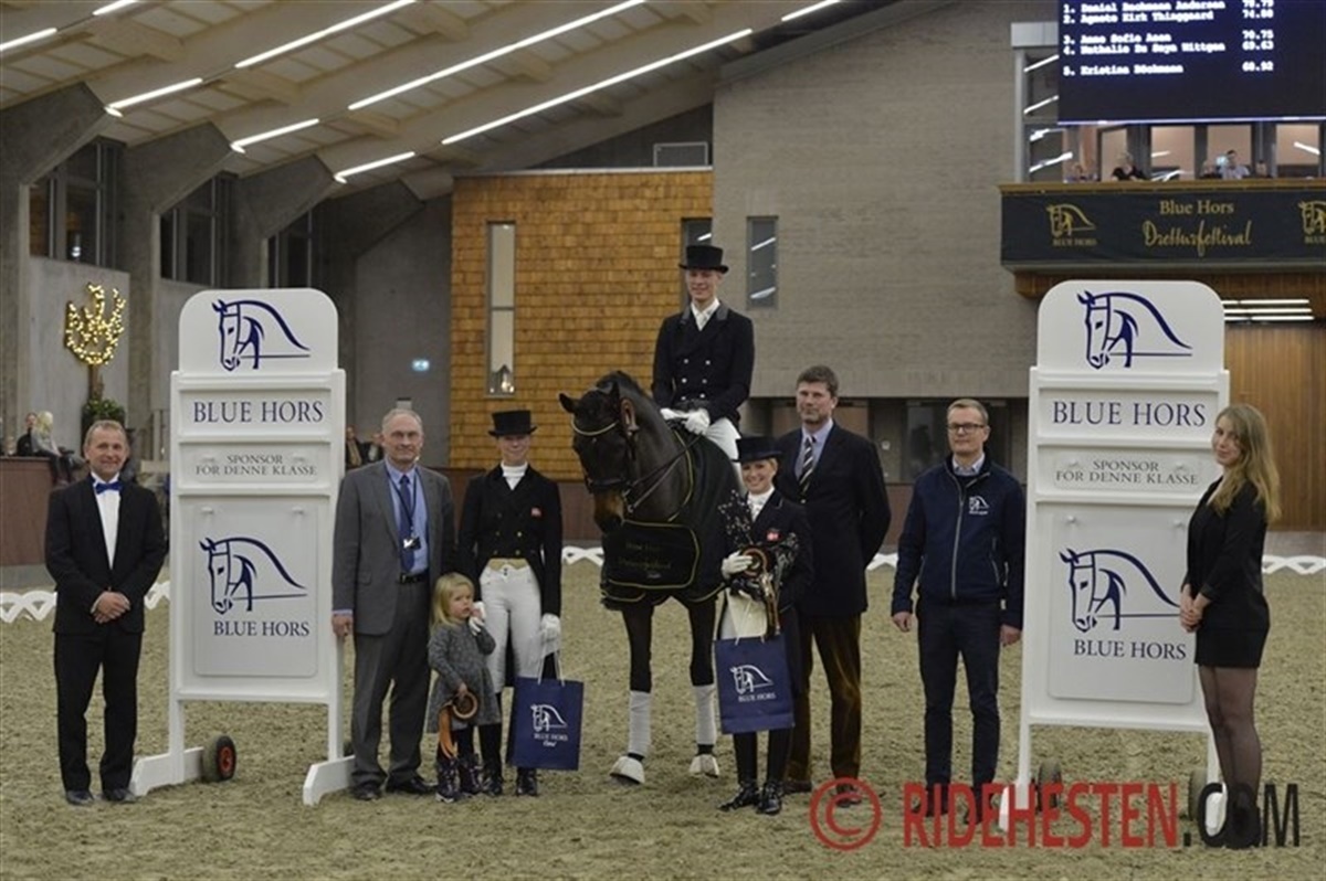Blue Hors' egne ryttere har taget godt for sig af sejre og placeringer på hjemmebanen, og det fortsatte til sidste klasse, hvor Daniel Bachmann Andersen kunne indkassere de 15.000 kr. til vinderen af Grand Prix kür efter et imponerende og næsten totalt fejlfrit ridt i kür, hvor Loxana igen dansede sammen med Daniel med en positiv indstilling og gålyst. De opnåede 78,792% Det blev Agnete Kirk Thinggaard som satte sig på andenpladsen med Cassio med en speciel kür til musik af Pink. - Det er en proces, vores kür er ikke helt færdig, og det er første gang, jeg rider den i konkurrence. - Men jeg syntes den er så sej, sagde Agnete med et smil, godt tilfreds med Cassio's afsluttende klasse. Agnete opnåede 74,875%