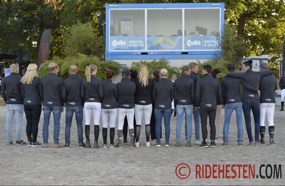 Rytterne har gået i jakker eller polo alle dage, og de har været en omvandrende reklamesøjle for Dansk Varmblod og sponsorerne.