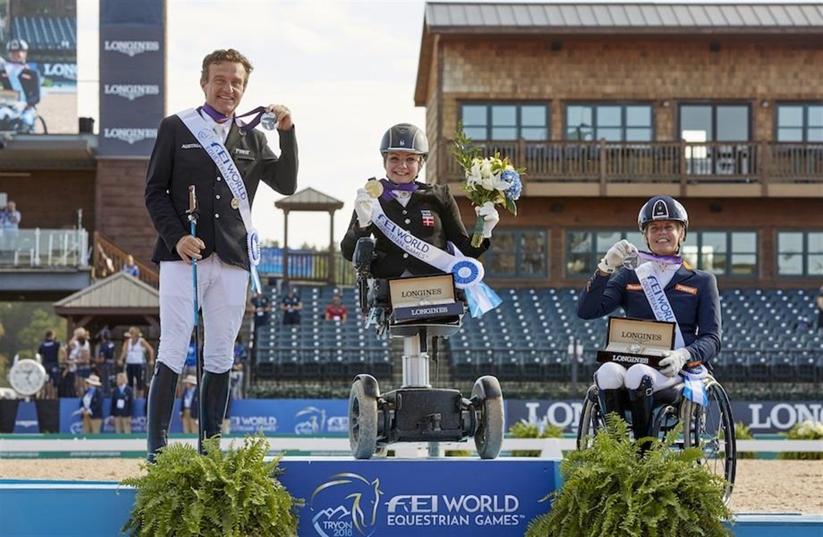 Stinna Tanges guldmedalje var ikke den eneste danske paradressurmedalje, der blev vundet i dag. I Grad IV sikrede Susanne Jensby Sunesen sig en flot bronzemedalje på den 20-årige DV-hoppe CSK's Que Faire e. Quite Easy/Ladoga. Hun opnåede 73.146 % og var dermed med i den meget tætte afgørelse i toppen, hvor den hollandske guldvinder Sanne Voets fik 73.927 % og sølvvinderen fra Brasilien fik 73.366 %.