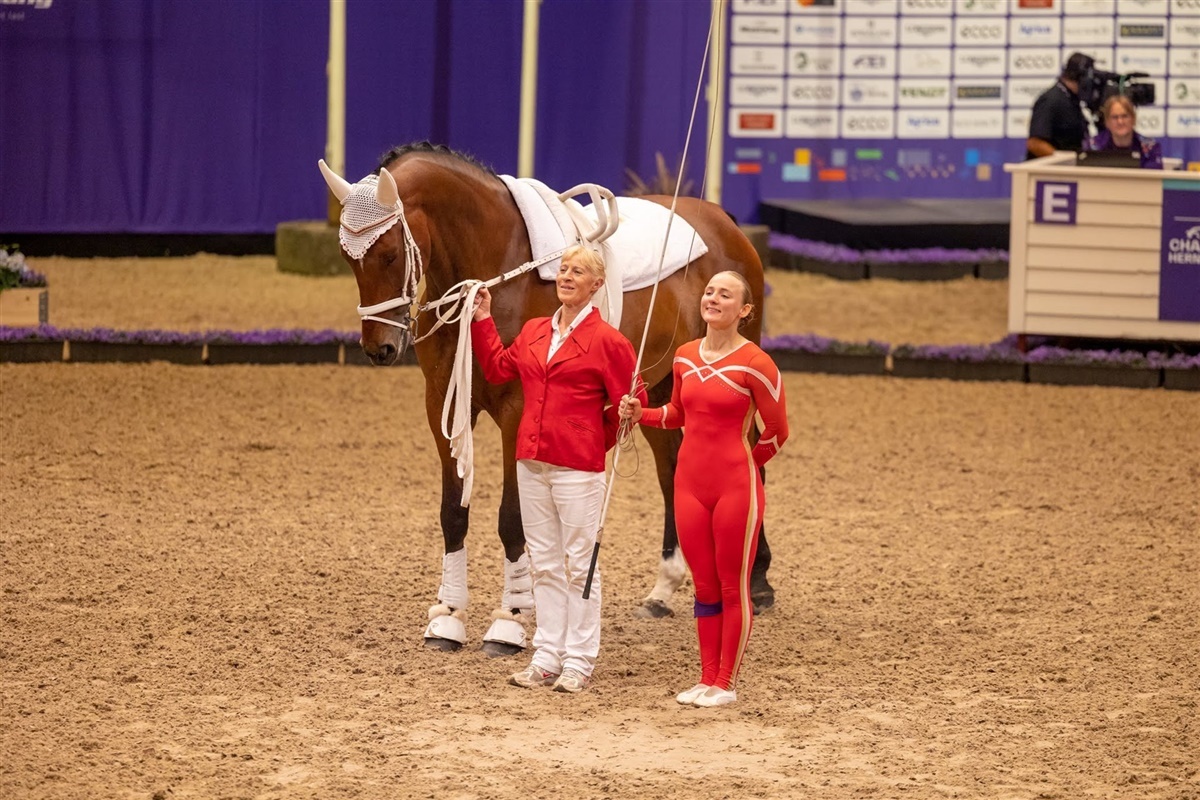 – Verdens sejeste Iben Dines Pedersen og fantastiske Hanne Haagen Hansen ved VM i Herning. Vi er så mega stolte og dybt taknemmelige for de fire helt fantastiske dage med Iben, Lieto og Hanne. Jeg har fældet mange glædestårer på deres vegne. Jeg ved hvor mange timers træning der ligger i dette. Når det ser nemt ud, ved man hvor svært det er.