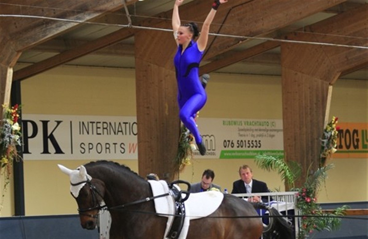 Specielt Thommysmindes 1. hold og 17-årige Kristina Jensen overraskede positivt i denne weekend. Kristina Jensen debuterede i international sammenhæng i weekenden som individuel juniorvoltiger. Hun præsterede nærmest over evne fra første konkurrence og lagde sig i klart i spidsen af konkurrencen fra stævnets begyndelse. Hendes nerver holdt hele vejen gennem alle tre runder, og sammen med hesten Jarl og Thommysmindes cheftræner Lasse Kristensen kunne hun nyde dannebrog ryge til tops med ”det er et yndigt land” blæsende ud af højttalerne. ”Før stævnet begyndte, var vi nødt til at flytte Kristina over på en hest som hun ikke har trænet så meget på. Når sådan noget sker, bliver mange slået helt ud af den – og Kristina var da også påvirket i begyndelsen af stævnet, men når hun så alligevel formår at præstere bedre end til træning, kan man ikke forlange mere som træner” fortæller en glad Lasse Kristensen. Fantastisk holdpræstation Mens Kristina Jensen overraskede med en individuel sejr, så overraskede Thommysmindes 1. Hold med en helt fantastisk holdpræstation. Holdene konkurrerer også over 3 runder, og efter 1. Runde, som er de såkaldt obligatoriske øvelser, scorede holdet mere end forventet, og lagde sig på en 7. plads ud af 11 hold. En flot placering til et hold der endnu ikke har trænet sammen så længe, og som der ikke på forhånd var store forventninger til, da deres internationale karriere først lige begyndte i denne weekenden. I konkurrencens anden runde, som er første gang hvor det frie program vises, fungerede alting for holdet. Akkompagneret af musik fra Musicalen Chicago formåede de 6 piger både at spille morderiske showgirls og mime med på sangene, så dommere og publikum blev fuldstændig bjergtaget. Med den fantastiske præstation avancerede holdet til en 3. plads. Det var uundgåeligt at pigerne pludselig følte et vist forventningspres inden sidste runde, men de var iskolde og leverede en imponerende finale. Ydermere var marginalerne på de gæve pigers side, så de formåede lige præcis at knibe sig op på en fantastisk 2. plads. Laumann nr. 4 Danmarks bedste kvindelige voltiger, Rikke Laumann, blev nr. 4. På 1. pladsen indfandt den regerende europamester, Joanne Eccles (GBR) sig og på 2. pladsen amerikanske Megan Benjamin, der er vendt tilbage til voltigesporten efter et par års pause. Megan Benjamin vandt guld ved WEG i 2006 på danskavlede Leonardo (e. Lancier) og blev dengang longeret af Lasse Kristensen fra Thommysminde. Megan forsøger igen at kvalificere sig til WEG, og får igen hjælp af Lasse Kristensen og hans heste. Foruden Megan var der yderligere 3 amerikanske voltigerere på de danske heste. Amerikanerne Mary MacCormick blev nr. 3, Elisabeth Loannou blev nr. 8 og Alexandra Trasher nr. 9. Hos herrerne opnåede Mikkel Vandrup en 5. plads. Marianne Tovborg tæt på VM-kvalifikation For Marianne Tovborg (Vork) var målet med det internationale stævne i Holland at kvalificere sig til årets verdensmesterskab under World Equestrian Games, der afvikles senere på året i Kentucky, USA. Det lykkedes ikke helt for Marianne i denne weekend, men trods en lidt svingende præstation under stævnet opnåede hun en flot placering som nr. 7, og med karakterer ganske tæt på kvalifikationskravet, så når formen om et par uger er helt i top, ser det stadig lovende ud for den 26-årige voltiger, der har været med i finalerne ved 4 internationale mesterskaber siden 2005. Ved sidste World Equestrian Games i 2006 opnåede hun en 7. plads. Marianne Tovborgs jagt på en VM-billet fortsætter Kristi-himmelfartsdagene i Østrig.