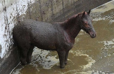 Hesten slap fra ulykken med et stort sæbeøje og ømme muskler.