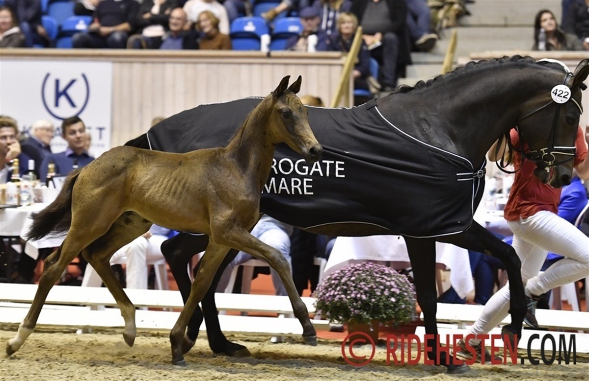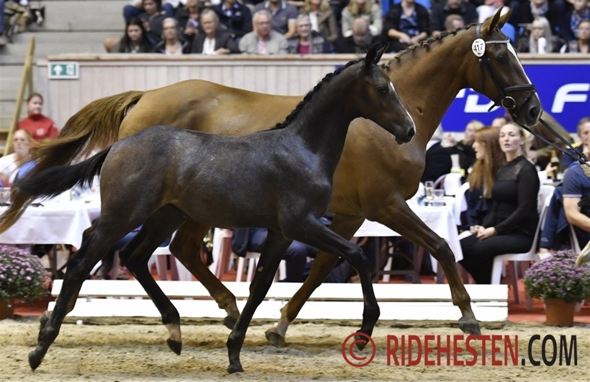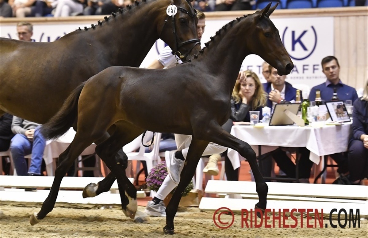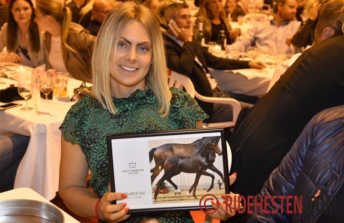 Årets Dressurhoppeføl Remember Me e. Blue Hors Don Olymbrio/ Sezuan blev ventet i spænding, og som ventet var der flere, der havde forelsket sig i det dejlige føl. En af dem er den danske landsholdsrytter, Anne Zibrandtsen, der fik hammerslag på 80.000 euro svarende til knap 600.000 dkk.
