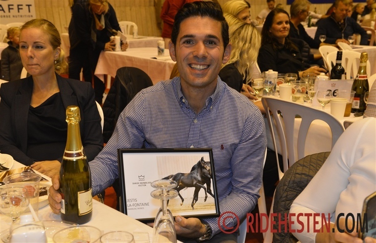 Aftens første højdespringer blev Årets Dressurhingsteføl Diaz Skovvang efter verdensmesterhingsten D’Avie. Buddene kom raskt op over 40.000 euro, og det blev faderhingstens ejer, Helgstrand Dressage, der fik sidste bud på 45.000 euro for det dejlige hingsteføl fra Marie Hedegaard Pedersen.