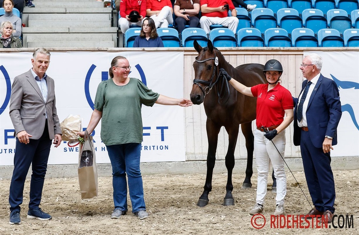 Vinder af titlen Årets dressurbetonede 2-års hoppe blev Darbie Højmark DWB e. Danciero/ Franklin, der er opdrættet af Inger Wejlstrup og ejet af LL Horses v/ Lennart Lindberg, som selv fremviste hoppen.