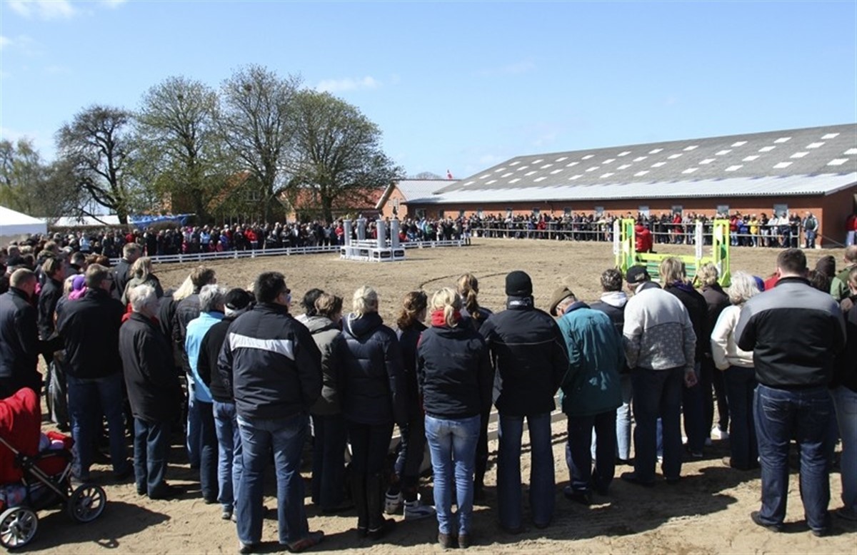 Limfjordsvinden havde ryddet himlen for skyer, så forårssolen fik frit spil over Katrinelunds store springbane, der var indrammet af omkring tusind hesteinteresserede, som var kommet for at nyde synet af hingste og afkom. Værterne ved arrangementet, Ib Kirk og Per Skjærbæk, ankom standsmæssigt til hest, islændere ganske vist, og fik i deres præsentation af hingste og afkom selvskab ved mikrofonen af talsmand for Dansk Varmblods kåringskommission, Poul Graugaard. Der blev fremvist hingste i hånd, i dressur og i springning, og rytterne Søren Pedersen og Isabel Bach, der begge er bosat i Tyskland, havde taget vejen til Mors for at ride nogle af hingstene for publikum. Isabel fremviste bl.a. den helt unge Stevie Wonder samt hendes faste partner De Noir, mens Søren sprang bl.a. den flotte unghingst Tailormade Stardust og den ældre hingst Tailormade Lawito. De tre ældre hingste Weltjunge, Crelido og De Noir kunne alle fremvise afkom under rytter og dermed give publikum et indtryk af deres stærke nedarvning af brugsegeskaber. Mens Weltjunge og De Noir begge blev fremvist i dressur, måtte Crelido lade sine afkom stå for præsentationen på Katrinelund, for han var på stor opgave i udlandet og skulle netop samme dag starte internationl 160 cm Grand Prix med norske Stein Endresen. Der var fra publikums side stor interesse for at se afkom efter de yngre hingste som L'Espoir, Stevie Wonder, Tailormade Temptation, Cabachon, Tailormade Lancelot m.fl. og adskillige kunder i forretningen havde velvilligt stillet deres hopper med dejlige føl til rådighed på dagen og det gav publikum rig mulighed for at vurdere nogle af årgangens rigtig gode føl. Efter endt opvisning var der mulighed for at inspicere staldene og nyde en god hestesnak over rigelige mængder af mad og drikke. Oplev i galleriet til højre nogle af Ridehesten.coms indryk fra det flotte arrangement.