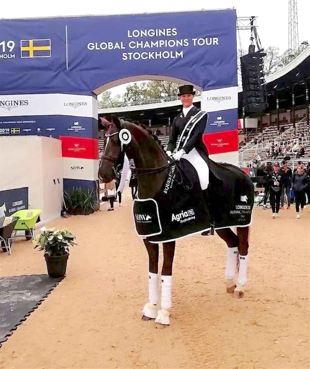 Helgstrand-rytteren Carina Nevermann Torup har fulgt op på torsdagens Prix St. Georges-sejr med endnu en flot førsteplads i Intermediaire I kür. Hun opnåede i dag 74.025% med den 9-årige vallak Soda Pop e. Sir Donnerhall/Bonheur.