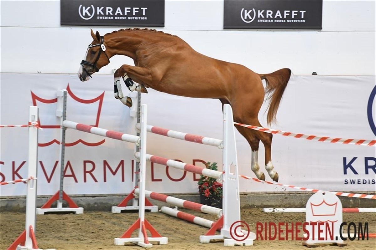 – Hoppen har en funktionel overlinie, en rummelig galop. Hun springer villigt og med godt overblik. Hoppen er meget ridelig og fik ved hoppekåring tildelt 8.5 for netop dette. Hun fik desuden to 9-taller i løsspringning og tildeles på baggrund af dette sølvmedalje, fortalte Karina Christiansen fra Dansk Varmblod om hoppen.