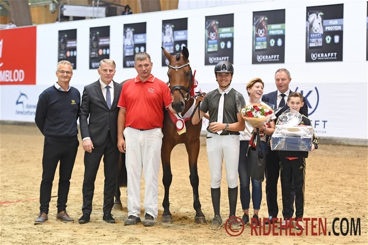 – Hoppen er optaget i Dansk Varmblods springhesteprogram, hun er en funktionel og udtryksfuld hoppe ud af Esben Pedersens gode hoppestamme. En fantastisk flot og moderne model af fremragende type. Hoppen har en god bevægelse og god ridelighed, og springer smidigt. Hoppen tildeles sølvmedalje, fortalte Karina Christiansen om hoppen.