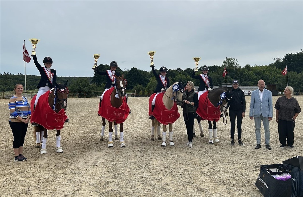 Med en samlet score på 442,028 %, blev det de dygtige ryttere fra Struer-Thyholm, der kunne tage hjem fra årets mesterskab med guldet om halsen. Holdet bestod af Anna Dora Munch på Giotto, Malina Bøgh Skovsager på Cato 88, Cecilie Gautier Christensen på Tackmann's Cookie samt Anna Munkebo på Lyngdal's Mira Puella.